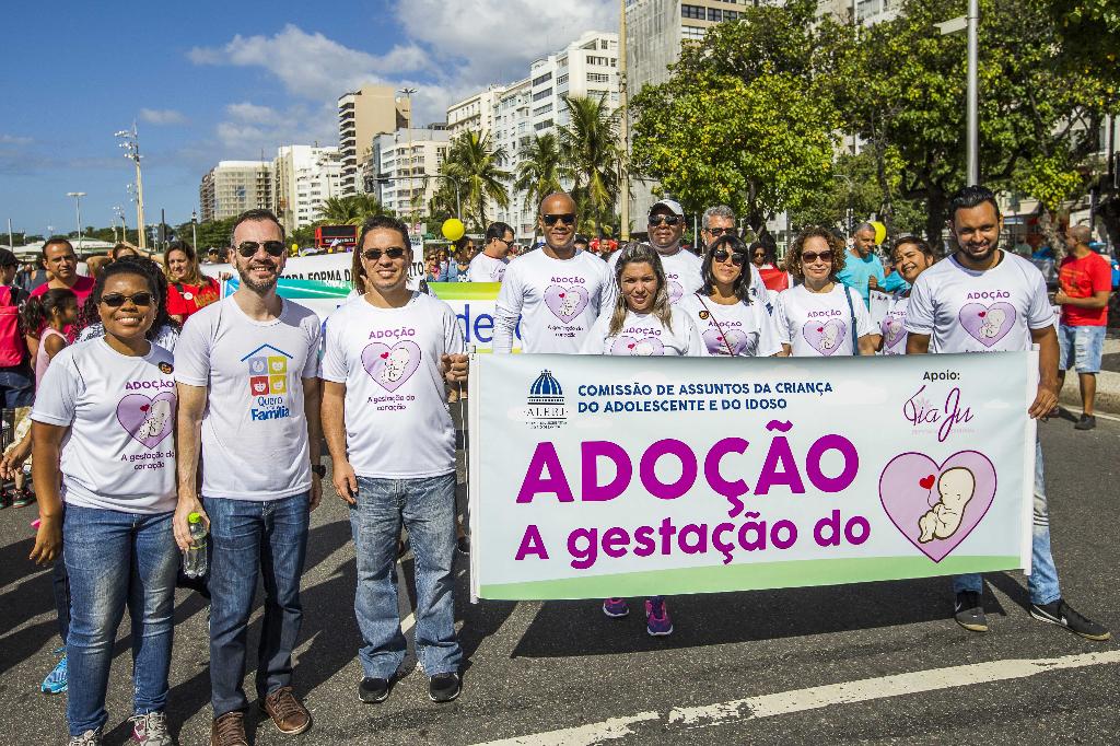 O Ministério Público do Estado do Rio de Janeiro (MPRJ) participou, na manhã de domingo (20/05), da 9ª Caminhada da Adoção, realizada a partir do posto 6 da praia de Copacabana. O objetivo do evento é dar visibilidade à situação de crianças e adolescentes acolhidos à espera de um lar, além de reivindicar maior celeridade aos processos de adoção, por meio de reforços nas equipes técnicas das varas da Infância e Juventude. Com a trégua da chuva que atingia a cidade desde o dia anterior, o encontro reuniu grande público e contou com a adesão de pessoas que caminhavam pela orla. Participaram autoridades, adotantes e crianças adotadas, além de representantes de órgãos e instituições públicas e da sociedade civil. O Dia Nacional da Adoção será celebrado na próxima sexta, 25 de maio.