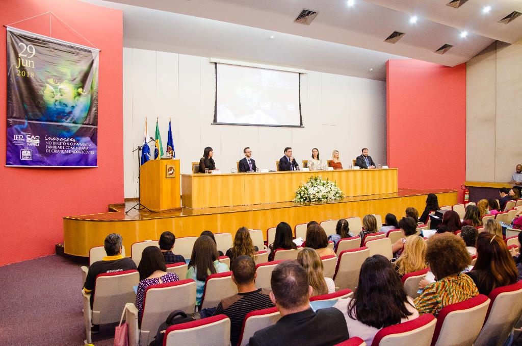 O Ministério Público do Estado do Rio de Janeiro (MPRJ), por meio do Centro de Apoio Operacional das Promotorias da Infância e da Juventude (CAO Infância/MPRJ) e do Instituto de Educação e Pesquisa (IEP/MPRJ), promoveu nesta sexta-feira (29/06), no auditório do edifício-sede, o seminário “Inovações no Direito à Convivência Familiar e Comunitária de Crianças e Adolescentes”. Ao abrir o evento, o procurador-geral de Justiça, Eduardo Gussem, exaltou a presença dos técnicos, promotores, conselheiros tutelares e demais operadores da área, que vieram de diferentes municípios e lotaram o auditório. O PGJ destacou o empenho dos órgãos realizadores do evento para promover a capacitação e troca de informações. “Isso faz com que tenhamos o auditório cheio, pois são eventos consistentes, com temática extremamente relevante e palestrantes que têm muito a dizer”, frisou Gussem, antes de abrir os trabalhos.