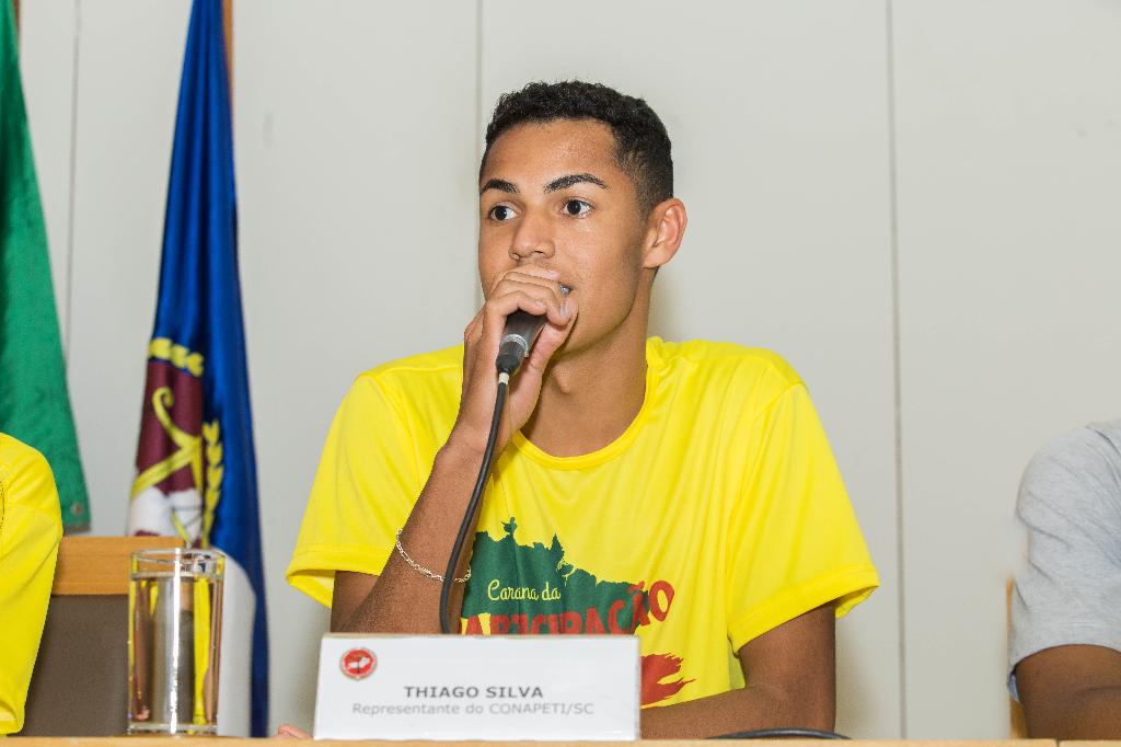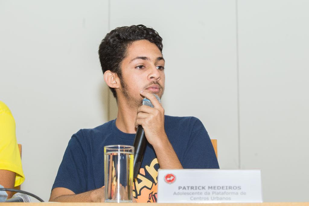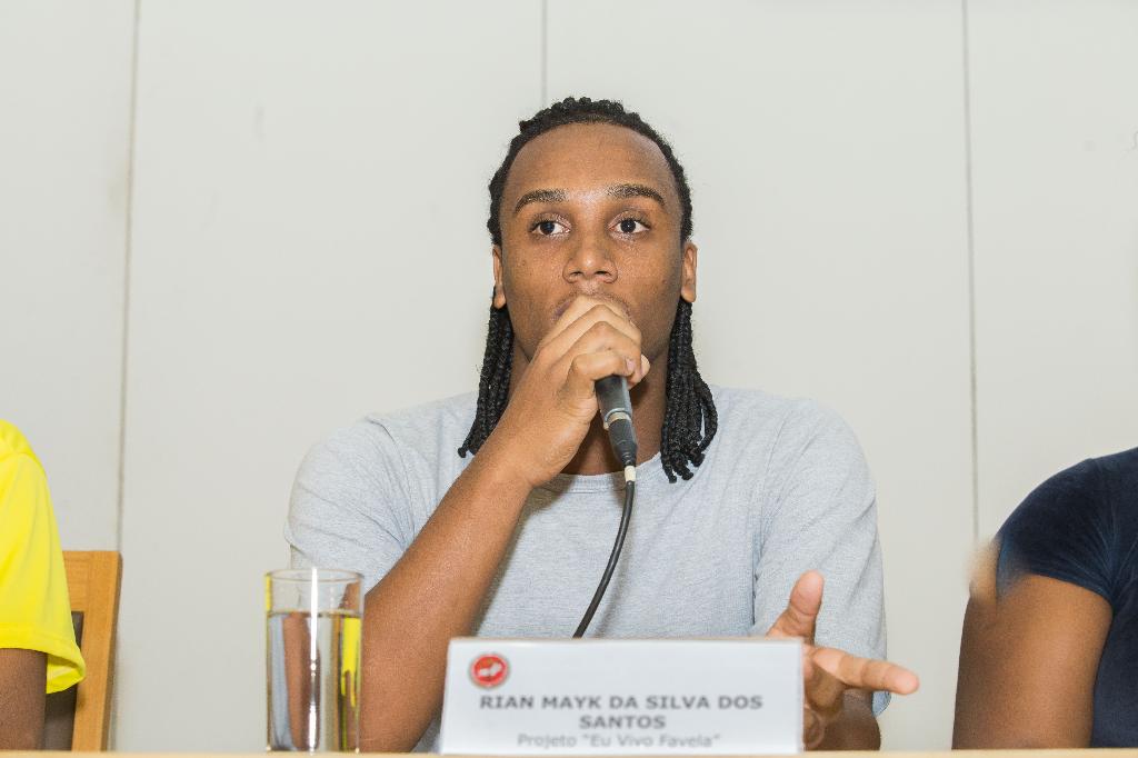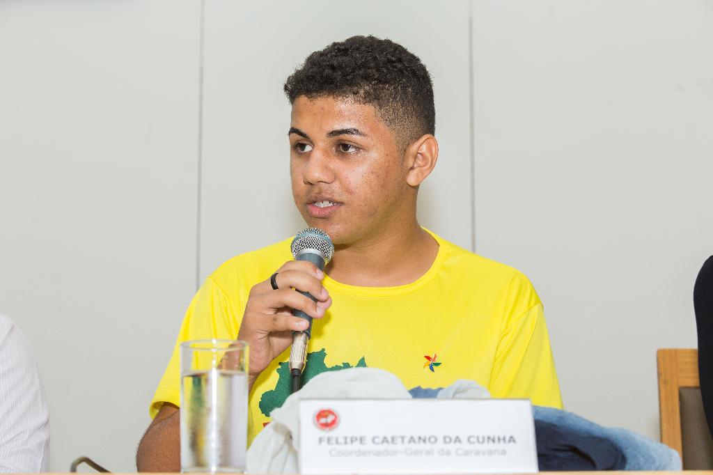 Após a abertura, houve a formação da segunda mesa, que foi novamente presidida por Felipe Caetano da Cunha, com as presenças de Patrick Medeiros, da Plataforma de Centros Urbanos; Lara Sardenberg, representante do Conapeti; Rian Mayk da Silva dos Santos, do projeto ‘Eu Vivo Favela’; Lays dos Santos, da ADHM/MPRJ; Thaís Antunes Matozzo, do projeto ‘Rap da Saúde’; Wagner Muniz, representante do Parlamento Juvenil; além de Thiago Silva e Erick Oliveira, representantes do Conapeti/SC e Conapeti/RS, respectivamente. De forma breve, cada um falou de seus projetos, das demandas dos jovens que seguem não atendidas e compartilharam experiências adquiridas durante a ‘Caravana da Participação pelos Direitos da Criança e do Adolescente’.