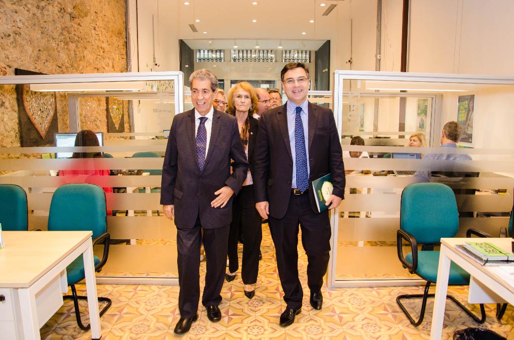 O PGJ percorreu os diferentes departamentos e assistiu a uma apresentação sobre o funcionamento do Sistema de Cooperativas de Créditos Sicoob. Também conheceu a agência compartilhada do Sicoob, inaugurada ano passado, na Rua do Carmo, 61. Trata-se de um espaço colaborativo para inovação e empreendedorismo, onde funcionam quatro cooperativas, aberto para associados e para o público. Eduardo Gussem elogiou o espaço e informou que o MPRJ pretende desenvolver um espaço colaborativo semelhante, oferecendo um lugar para que empreendedores possam se reunir e desenvolver trabalhos.
