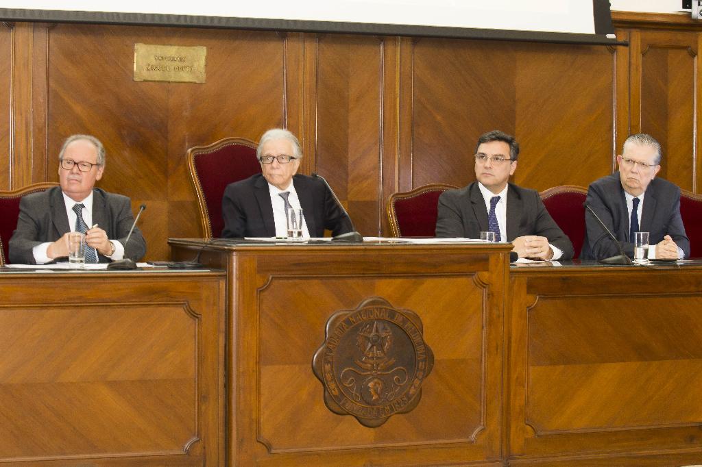 O Ministério Público do Estado do Rio de Janeiro (MPRJ) participou, na noite de quinta-feira (02/08), do Simpósio sobre História da Medicina, realizado pela Academia Nacional de Medicina (ANM) e voltado para profissionais e estudantes da área de Saúde. Na ocasião, o procurador-geral de Justiça, Eduardo Gussem, proferiu a palestra ‘O Ministério Público e uma Nova Visão de Política Pública’, em que apresentou a plataforma digital ‘MP em Mapas’, ferramenta que reúne dados estatísticos e informações georreferenciadas relativas às áreas de atuação do MPRJ. A mesa da solenidade foi composta pelo presidente da ANM, Jorge Alberto Costa e Silva, além do secretário-geral e do primeiro-secretário da instituição, José Galvão Alves e Ricardo José Lopes da Cruz, respectivamente.