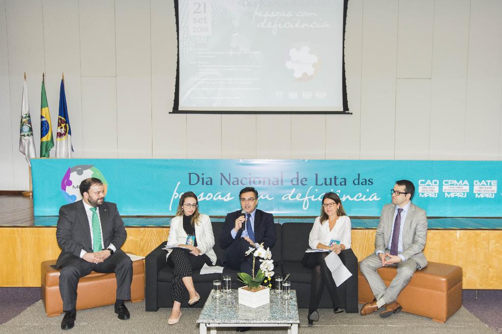 A primeira palestra foi proferida pela escritora e jornalista Cláudia Werneck, fundadora da "Escola de Gente", que de maneira interativa e com perguntas provocativas direcionadas à plateia, reforçou a ideia da inclusão como proposta de liberdade, devendo ser exercida de forma contínua e incansável. O segundo palestrante da tarde, o servidor do MPRJ, ex-atleta, bicampeão paralímpico de futebol para cegos e consultor em acessibilidade, Sandro Laina Soares, falou sobre a inclusão das pessoas com deficiência no ambiente de trabalho e contou, de forma bem-humorada, sobre as situações cotidianas pelas quais passa, enquanto pessoa cega.