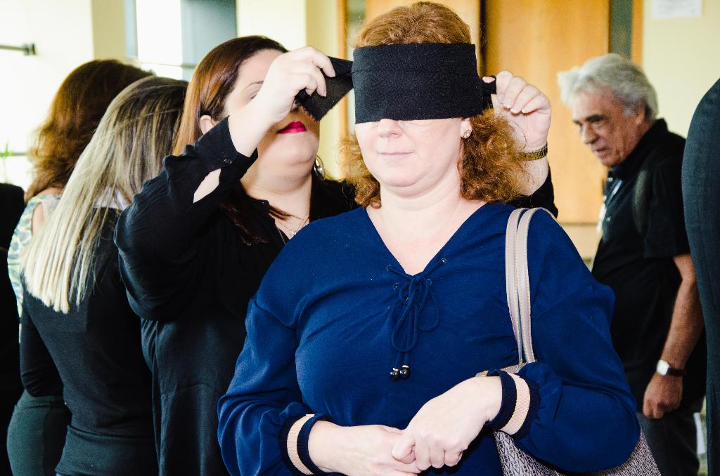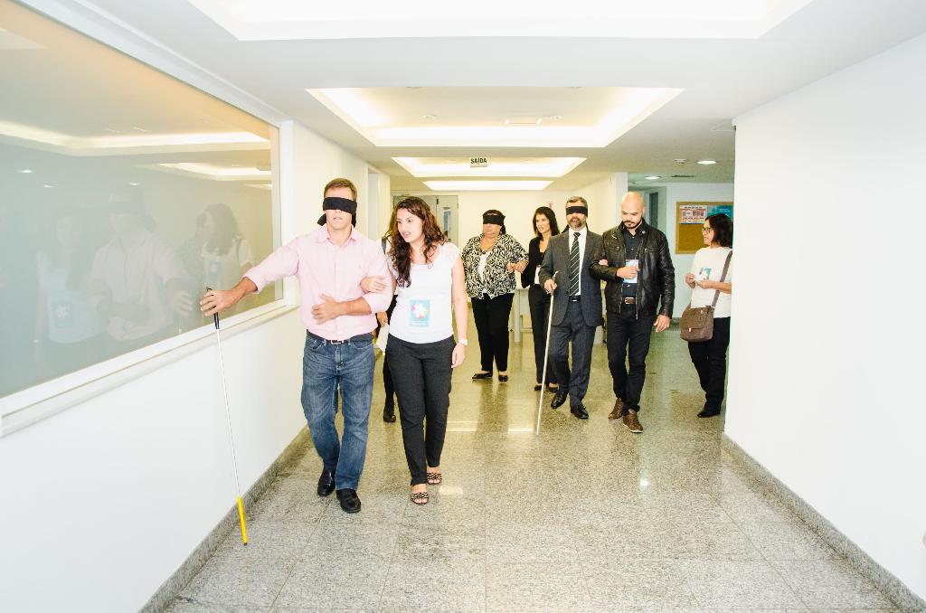 Houve, ainda, um vivência pela sede, com cadeiras de rodas e vendas, que contou com a participação de 12 representantes de diversos órgãos do MPRJ, haja vista a importância de tais áreas na efetivação e/ou sensibilização da inclusão no âmbito institucional. O percurso foi pensado em conjunto com técnicos do GATE/MPRJ, que acompanharam a vivência junto com guias voluntários e apontaram algumas barreiras arquitetônicas, como por exemplo, ausência de rampas, piso tátil, carpete e a altura de alguns objetos, entre outras observações. Ao final da vivência os participantes foram conduzidos à Ouvidoria, onde ocorreu uma dinâmica consistente em relatarem uma denúncia sem utilização de palavras, como se surdos fossem.