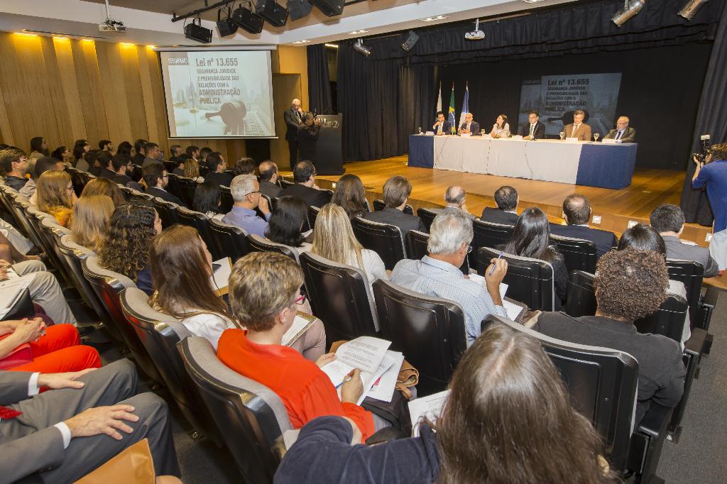 O documento foi assinado no Salão Nobre do TCE-RJ, no Centro do Rio, pelo procurador-geral de Justiça, Eduardo Gussem, e a presidente interina do referido tribunal, Marianna Montebello Willeman. Logo após a assinatura do convênio, teve início o ‘Seminário Lei 13.655 – Segurança Jurídica e Previsibilidade das Relações com a Administração Pública’, que reuniu estudiosos e autoridades do meio jurídico e lotou o auditório do Espaço Cultural Humberto Braga, na sede do TCE-RJ. A referida lei dispõe sobre segurança jurídica e eficiência na criação e aplicação do direito público, e tem suscitado visões polarizadas, nas quais se opõem entusiastas e críticos severos, que divergem sobre os métodos de atuação dos órgãos de fiscalização e controle.