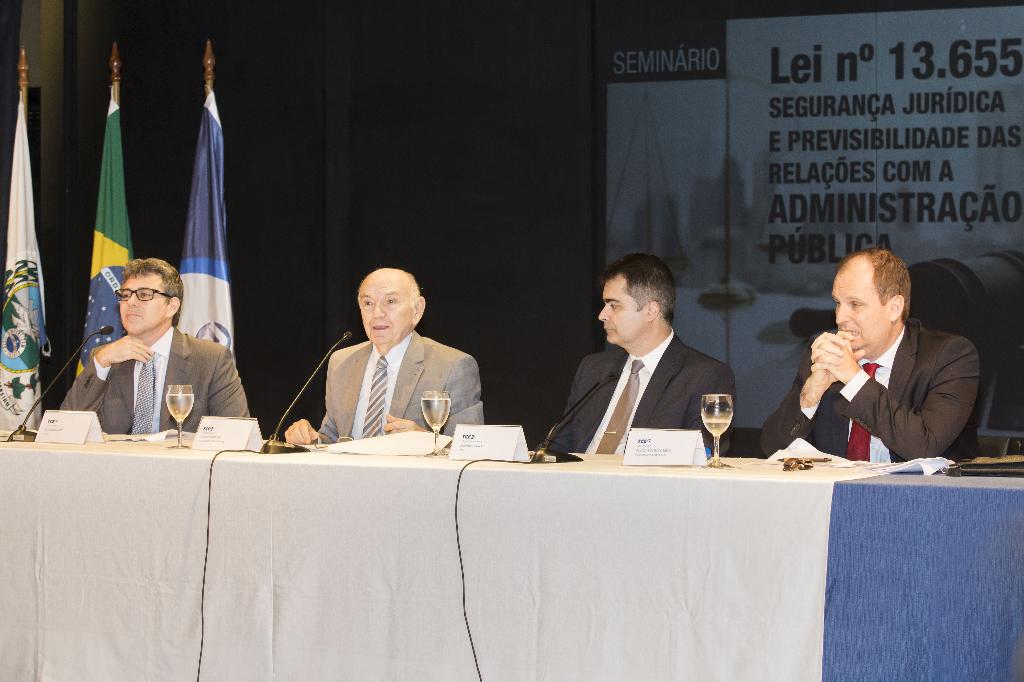 Também compuseram a mesa de abertura do seminário Gilberto de Mello Nogueira Abdelhay Júnior, juiz auxiliar da presidência do Tribunal de Justiça do Estado do Rio de Janeiro (TJRJ), representando o presidente da instituição, desembargador Milton Fernandes de Souza, e Antônio Carlos Flores de Moraes, conselheiro do Tribunal de Contas do Município do Rio de Janeiro (TCM-Rio), como representante do presidente do Instituto Rui Barbosa (IRB), Ivan Lelis Bonilha.