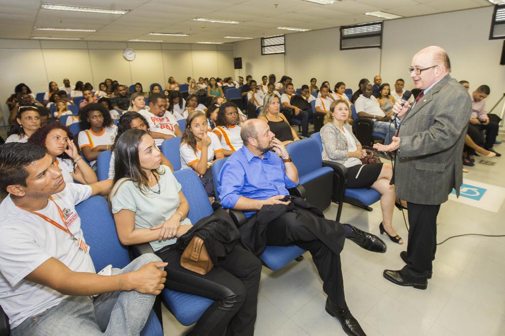 O Ministério Público do Estado do Rio de Janeiro (MPRJ), por meio do Centro de Apoio Operacional das Promotorias de Justiça de Tutela Coletiva de Proteção à Educação (CAO Educação/MPRJ) e da Ouvidoria, participaram, nesta quinta-feira (20/09), do Projeto "Ouvidoria nas Escolas", na Escola Judicial do Tribunal Regional do Trabalho da 1ª Região, no Centro.