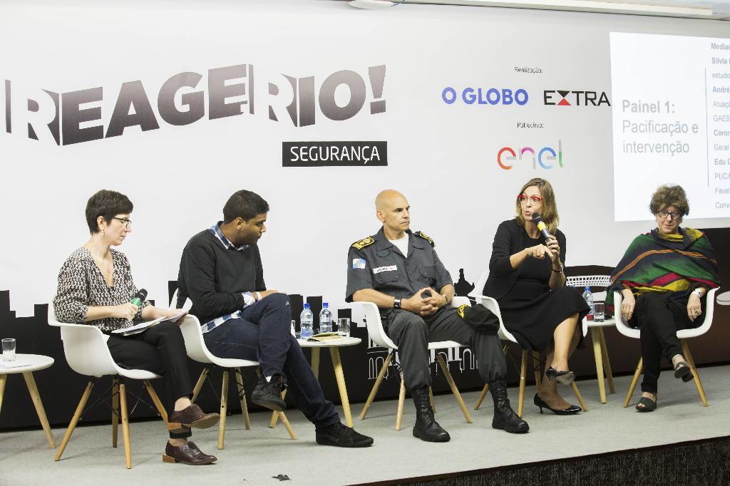 O Ministério Público do Estado do Rio de Janeiro (MPRJ), representado pela coordenadora do Grupo de Atuação Especializada em Segurança Pública (GAESP/MPRJ), promotora de Justiça Andrea Amin, participou, nesta quinta-feira (27/09), de um painel para discutir a Intervenção Federal e a Pacificação, no evento “Reage, Rio!”. Realizado no auditório dos jornais O Globo/Extra, responsáveis pelo evento, o painel apresentou diferentes olhares sobre o tema ao reunir a Coordenadora do Observatório da Intervenção, Silvia Ramos; o comandante-geral da Polícia Militar do Rio, Luis Claudio Laviano; e o repórter e cronista do site Faveladarocinha.com Edu Carvalho.