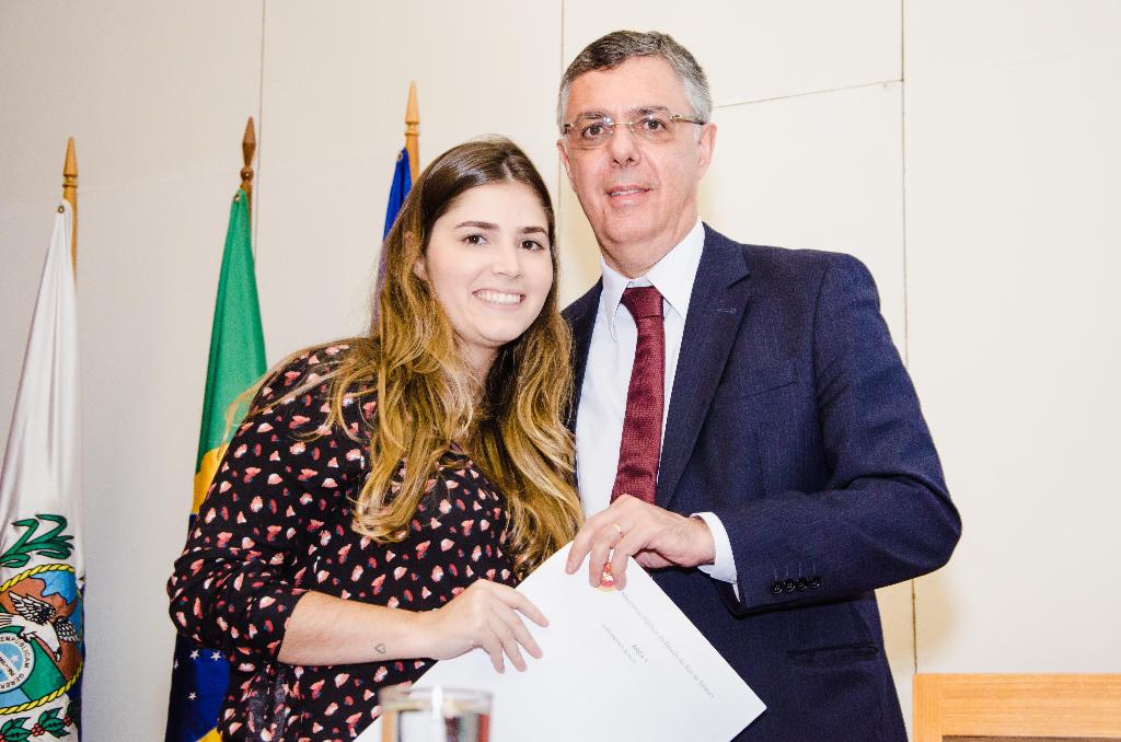 A corregedora-geral Luciana Sapha Silveira leu a declaração de posse dos novos estagiários da instituição. “Parabenizo os empossandos e os familiares que compareceram à nossa singela cerimônia de posse. Os dois próximos anos serão de muito aprendizado para vocês, não só jurídico mas, também, de vida”, discursou.