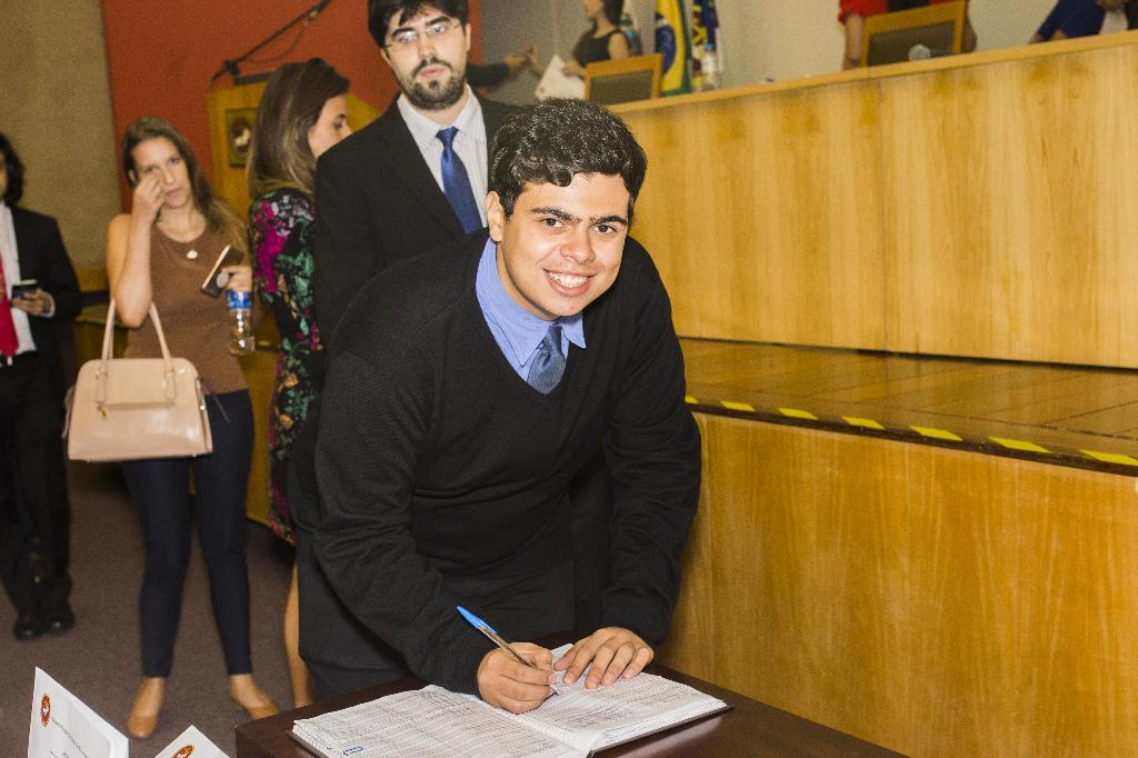 O estudante Victor Ferreira, aluno da UFRJ e primeiro colocado no concurso para a Capital, leu o Termo de Compromisso da primeira parte da sessão de posse, acompanhado por todos os aprovados. Na segunda sessão, destinada aos 288 alunos que realizarão seus estágios nas Promotorias do interior, o responsável pela leitura do termo foi Igor de Souza, aluno da Faculdade de Direito de Valença. O estágio forense tem duração máxima de dois anos.