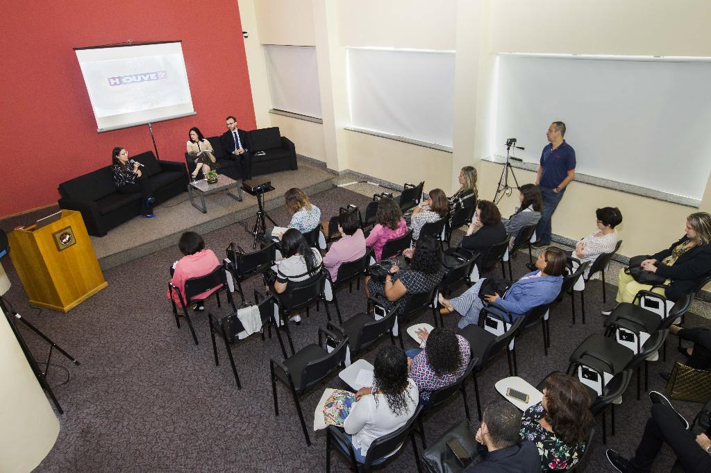 O Ministério Público do Estado do Rio de Janeiro (MPRJ), por meio do Centro de Mediação, Métodos Autocompositivos e Sistema Restaurativo (CEMEAR/MPRJ), com apoio do Centro de Apoio Operacional das promotorias de Justiça de Infância (CAO Infância/MPRJ), promoveu, na manhã desta segunda-feira (08/10), no foyer do edifício-sede, uma sessão de exibição do filme (H)Ouve, seguida de um debate sobre o depoimento especial para crianças e adolescentes vítimas de violência.