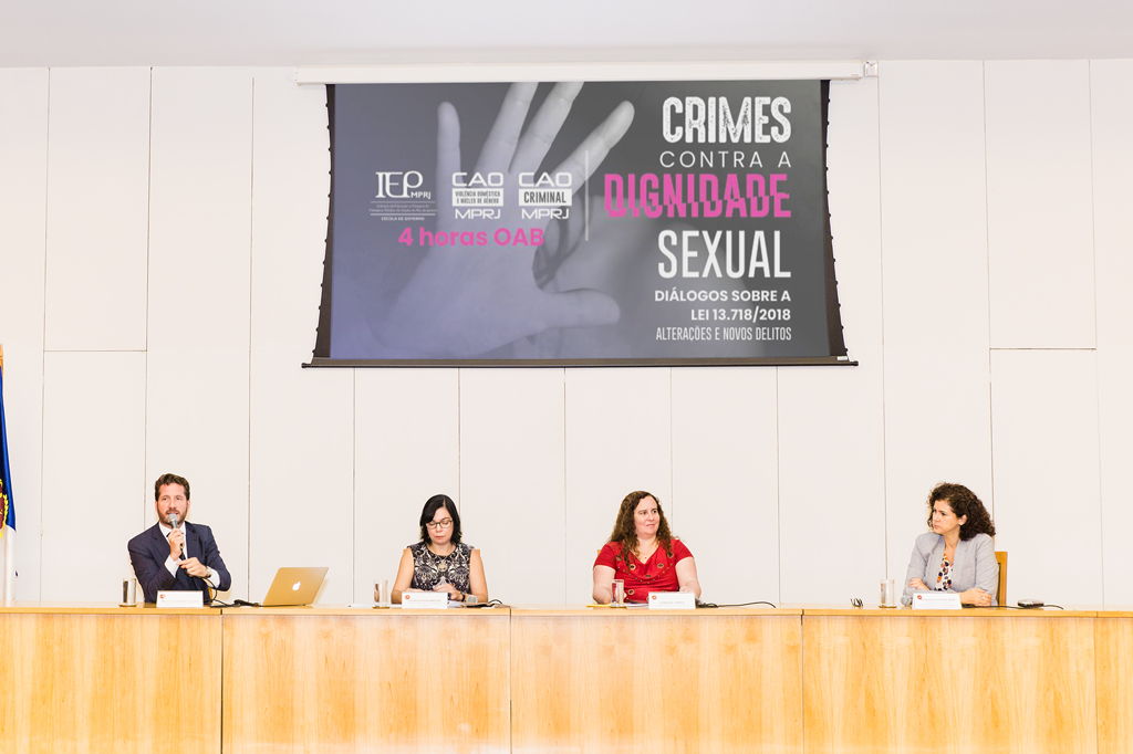 O Ministério Público do Estado do Rio de Janeiro (MPRJ), por meio do Instituto de Educação e Pesquisa (IEP), do Centro de Apoio Operacional das Promotorias de Justiça de Violência Doméstica Contra a Mulher e Núcleo de Gênero (CAO Violência Doméstica e Núcleo de Gênero/MPRJ) e do Centro de Apoio Operacional das Promotorias de Justiça Criminal (CAO Criminal/ MPRJ) realizou na manhã de quinta-feira (29/11), no auditório do edifício-sede, o evento “Crimes Contra a Dignidade Sexual: Diálogos sobre a lei 13.718/2018 – Alterações e Novos Delitos”.