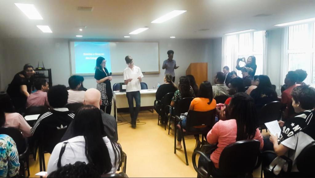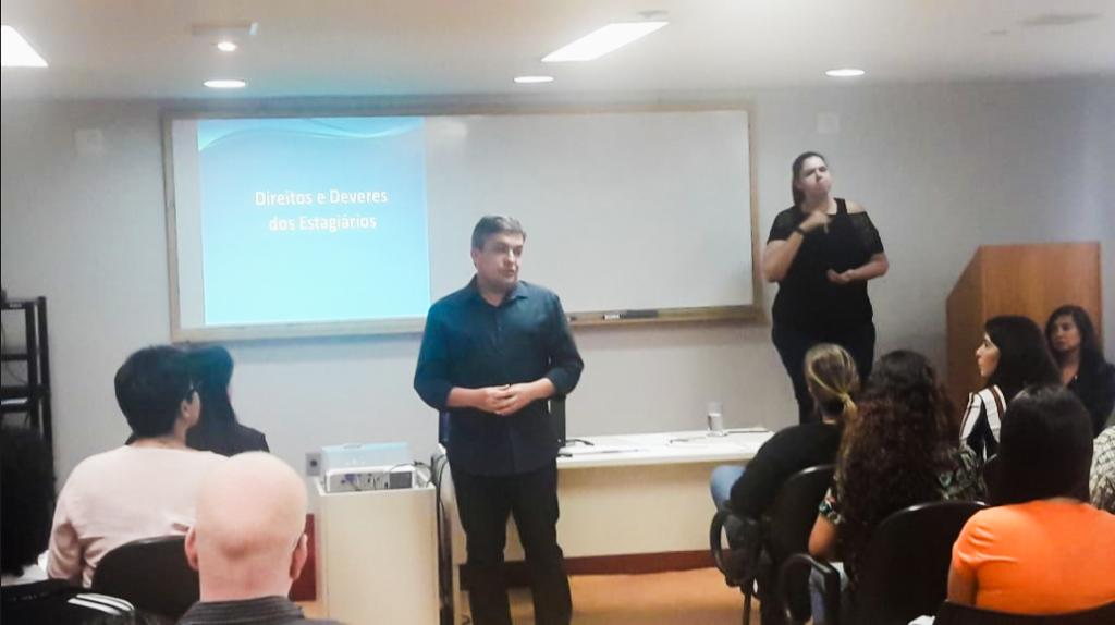O supervisor do Núcleo de Estágio não Forense (DRH/NENF), Fabio Vieira da Silva, e a psicóloga Viviani Mazzocco Dutton Burke, da Gerência de Desenvolvimento Pessoal (DRH/GDP), falaram sobre direitos, deveres e postura profissional dos estagiários. Além disso, nesta ocasião os estagiários realizaram diversas perguntas, sendo todas respondidas pelos palestrantes.