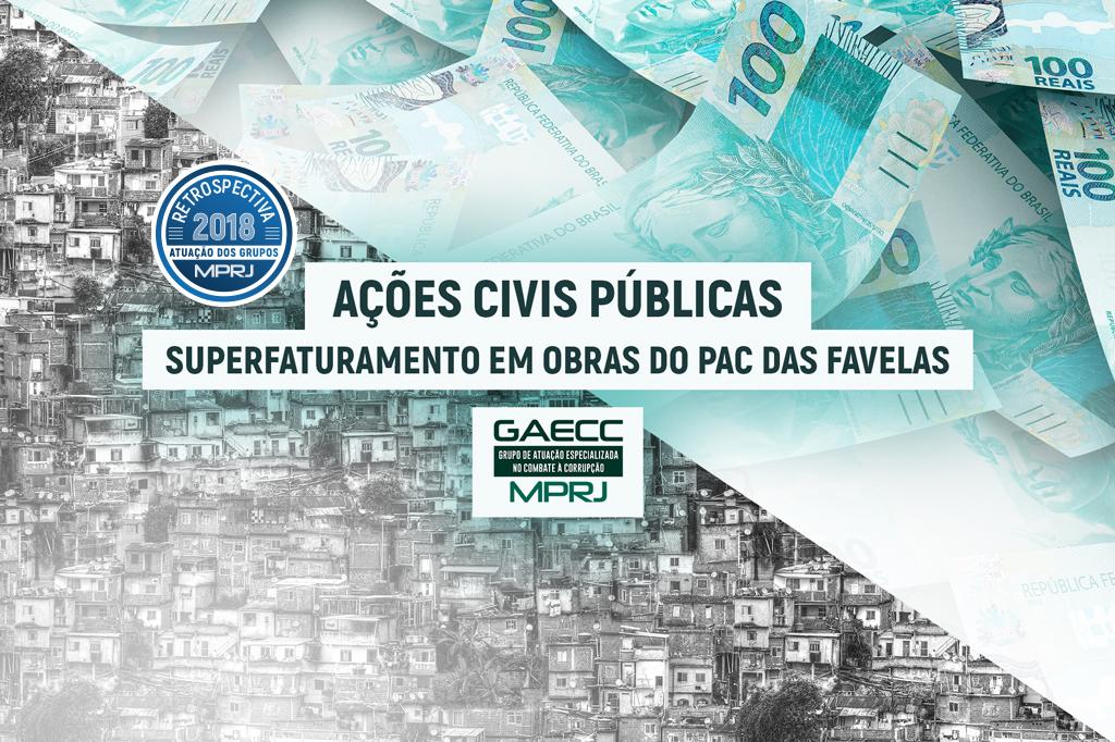 O MPRJ instaurou, em 02 de maio de 2017, por intermédio da Subprocuradoria-Geral de Justiça de Assuntos Cíveis e Institucionais (SUBCIVEL/MPRJ), após comunicação do Tribunal de Contas do Estado do RJ (TCE-RJ), um Inquérito Civil (2017.00118881) com a finalidade de apurar as denúncias de superfaturamento e sobrepreços praticados no contexto da execução do projeto do PAC das Favelas, nos três contratos celebrados em 2008 entre os governos estadual e federal. O acordo previa o financiamento das obras e serviços de urbanização integrada das localidades, além da instalação de trabalho social e posto para regularização fundiária na Comunidade da Rocinha e nos Complexos do Alemão e de Manguinhos