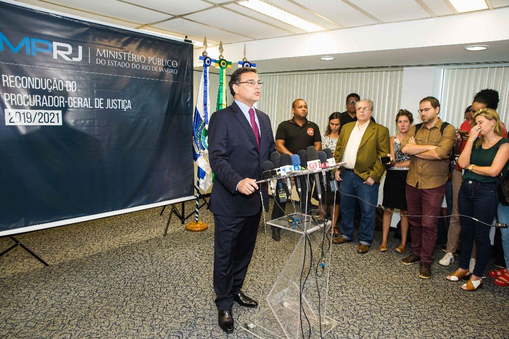 Eduardo Gussem foi reconduzido, nesta segunda-feira (14/01), ao cargo de procurador-geral de Justiça do Ministério Público do Estado do Rio de Janeiro (MPRJ) para o biênio 2019/2021, em solenidade no auditório do edifício-sede. O PGJ foi nomeado pelo governador do Estado, Wilson Witzel, em decreto do dia 2 de janeiro deste ano. Gussem foi escolhido como o único candidato inscrito em eleição realizada entre os membros do MPRJ em 3 de dezembro de 2018 (ele recebeu 93.2% dos votos válidos - que corresponde a 750 votos dos 804).