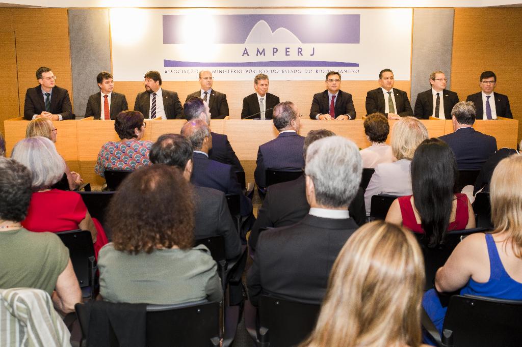Além do PGJ, do governador, do ex-presidente da Amperj e de Ertulei, compuseram a mesa o 1º vice-presidente da Conamp, Manoel Victor Sereni Murrieta e Tavares, o procurador-geral de Justiça de Minas Gerais, Antonio Tonet, Sebastião Caixeta, representante do Conselho Nacional do Ministério Público, o defensor-público geral do Estado do Rio, Rodrigo Pacheco e o presidente da seccional RJ da Ordem dos Advogados do Brasil, Luciano Bandeira.