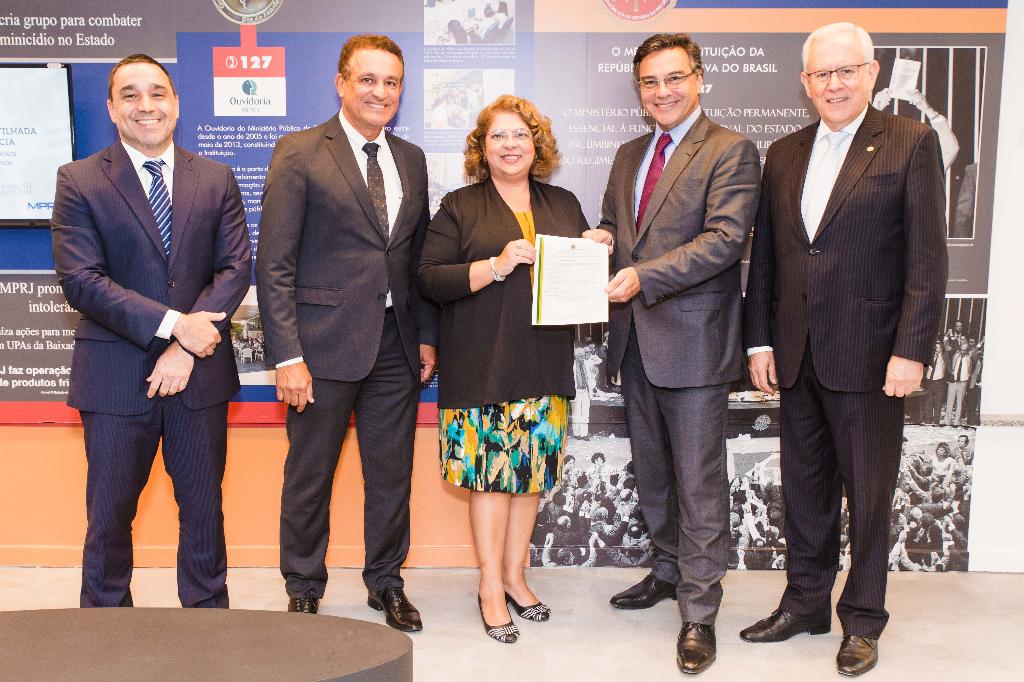 A entrega do registro foi acompanhada pelo subprocurador-geral de Justiça de Relações Institucionais e Defesa de Prerrogativas, Marfan Vieira; pelo subprocurador-geral de Justiça de Administração, Eduardo Lima Neto; e pelo coordenador de Análises, Diagnósticos e Geoprocessamento do MPRJ, Pedro Mourão.