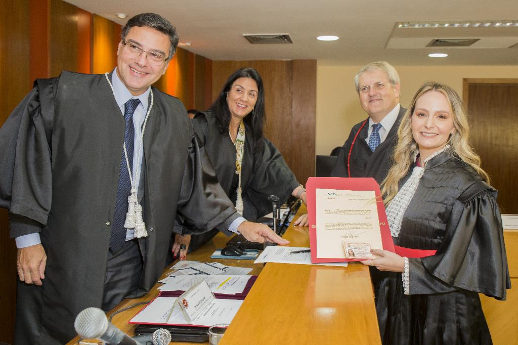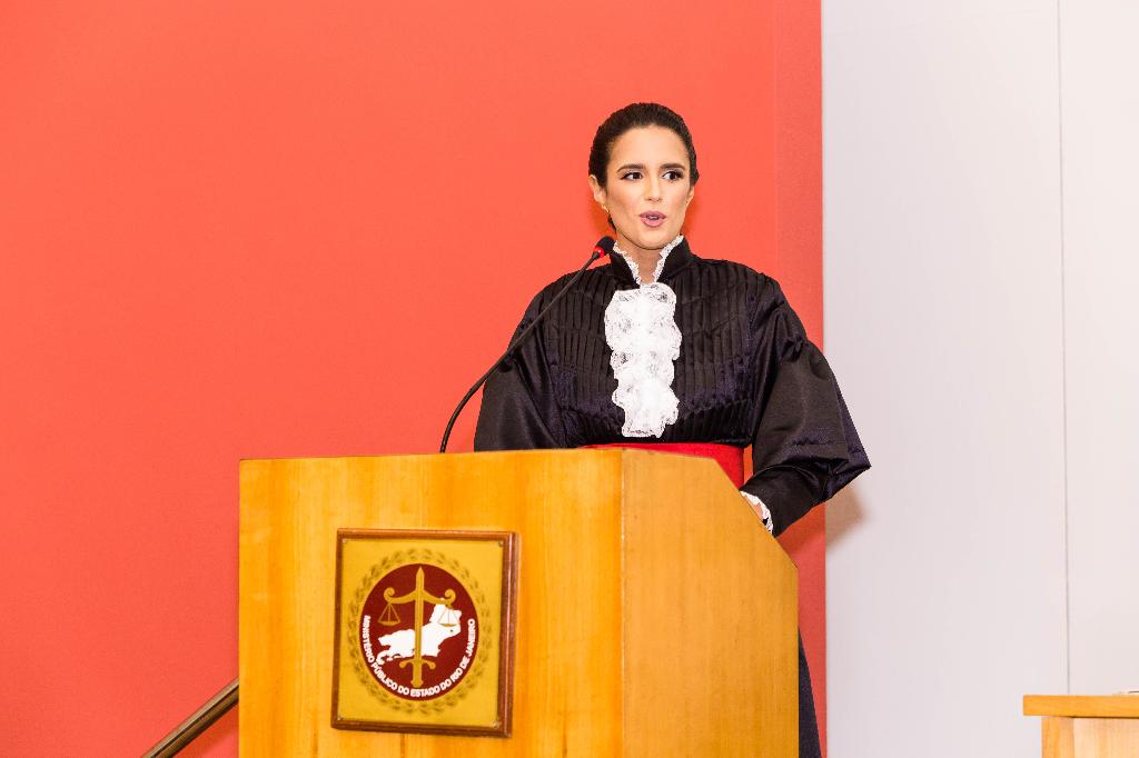 Falando em nome dos novos membros, Sylvia Porto Agorianitis lembrou que o discurso teve a colaboração de todos os aprovados. “Todos achamos por bem destacar a palavra gratidão neste momento. Pelos nossos pais e familiares, que nos acompanharam nessa jornada, pelos organizadores do concurso, que o conduziram com tamanha lisura e por estarmos nessa posição hoje, e por estarmos aqui neste momento. Sobrevivemos a um dos processos seletivos mais difíceis do país, mas a verdadeira prova começa agora. Somos os novos intérpretes e atores do sistema de Justiça, sabendo que o MPRJ é o verdadeiro agente de transformação social. Se ontem fomos capazes de vencer batalhas que nem imaginávamos, hoje temos que usar a mesma coragem e determinação para representar com eficácia essa instituição”, pontuou a nova promotora de Justiça.