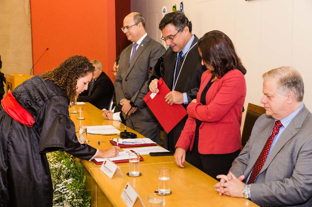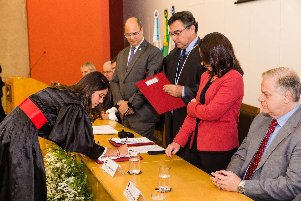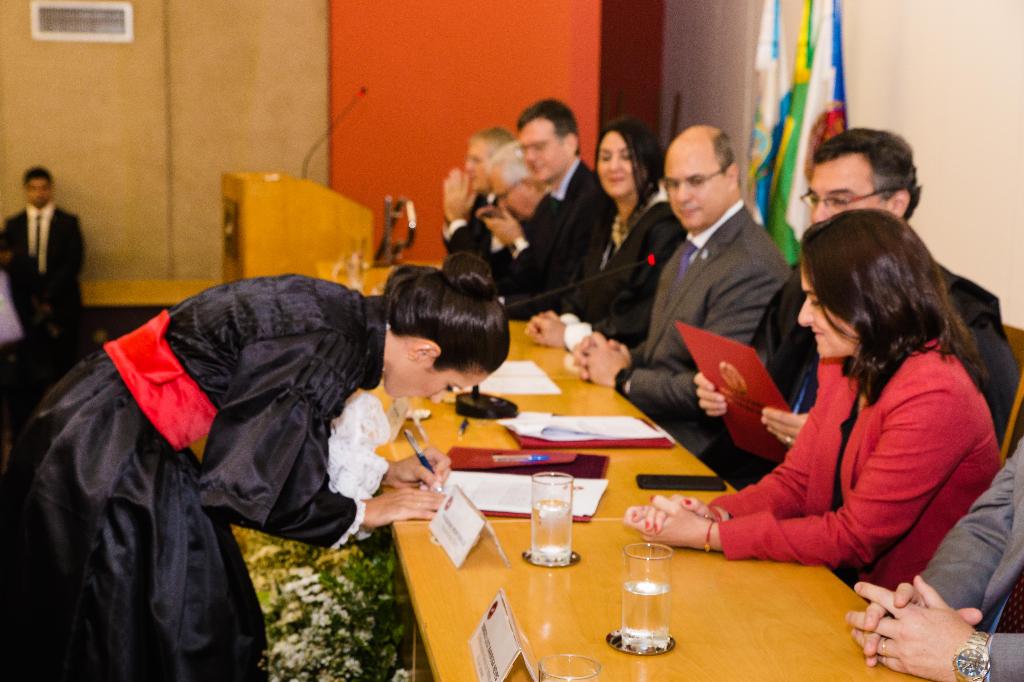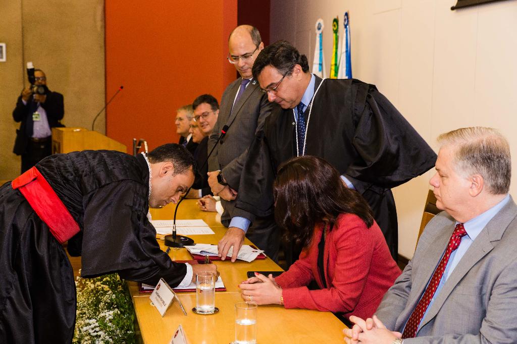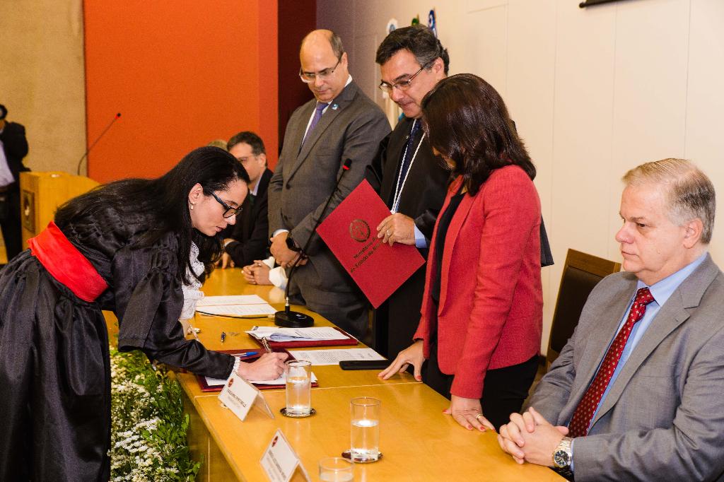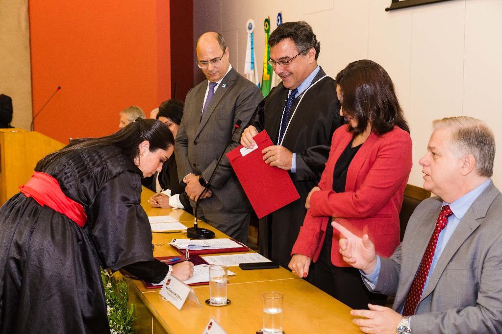 Após as leituras do termo de compromisso, pelo empossando Thiago Muniz Bucker, e do termo de posse pelo procurador de Justiça Eduardo Lima Neto, o PGJ convidou os novos promotores para a assinatura do termo de posse. Secretária do Conselho Superior do MPRJ, a procuradora de Justiça Sumaya Therezinha Helayel fez a saudação aos novos membros. “Hoje vocês têm a sensação de dever cumprido e a nossa expectativa é a de que possam contribuir para o aperfeiçoamento de nossa sociedade. O promotor é um agente de transformação social, que contribui para o amadurecimento da cidadania e zela pelo Estado Democrático de Direito”, declarou a procuradora.