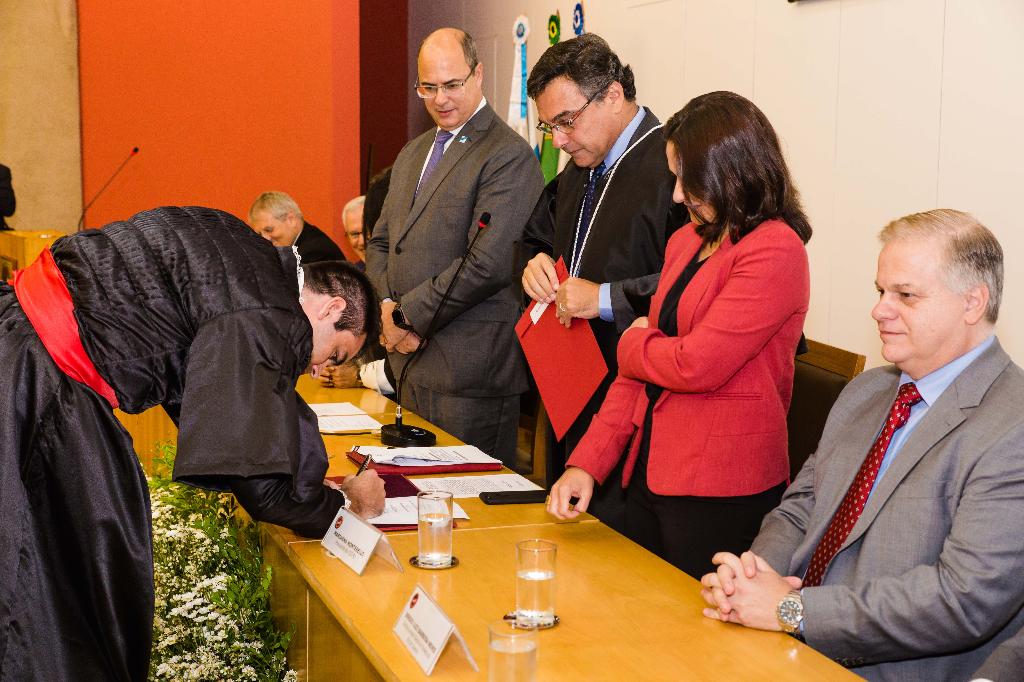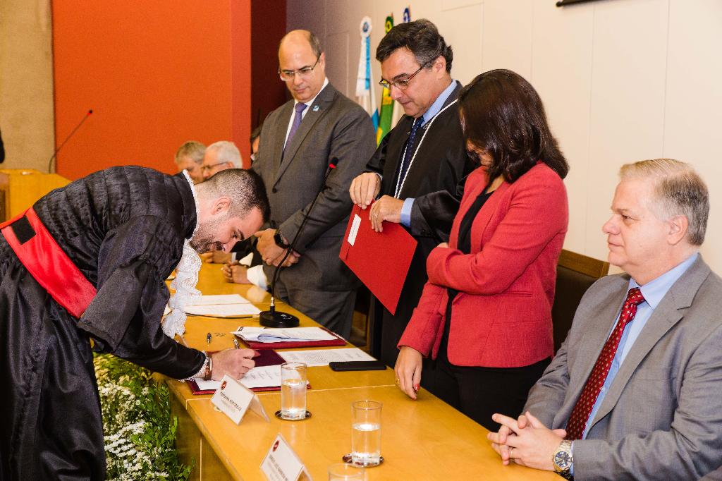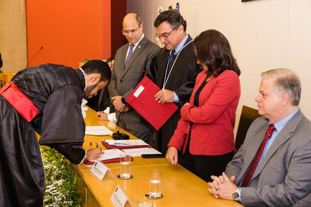 O procurador-geral de Justiça, Eduardo Gussem, empossou nesta sexta-feira (01/02), 17 promotores de Justiça substitutos, aprovados no XXXV concurso público de provas e títulos do Ministério Público do Estado do Rio de Janeiro (MPRJ). A cerimônia contou com a presença do governador Wilson Witzel. Os novos membros da instituição são: Sylvia Porto Agorianitis, Thiago Muniz Bucker, Anna Carolina Brochini Nascimento Gomes, Carina Rodrigues de Senna D’Avila, Gustavo Livio Dinigre Pinto, Rafael Dopico da Silva, Renata Mello Chagas, Guilherme Martins, Heleno Ribeiro Pereira Nunes Filho, Matheus Vieira Gomes, Fábio de Oliveira Ferreira, Marina Oliveira Andrade, Yan Portes Vieira de Souza, Fernanda Cunha Bahia, Luiza Lange Rosa Kloppel, Ricardo Duarte Ferreira Figueira e Luiz Otávio Sales Damasceno.