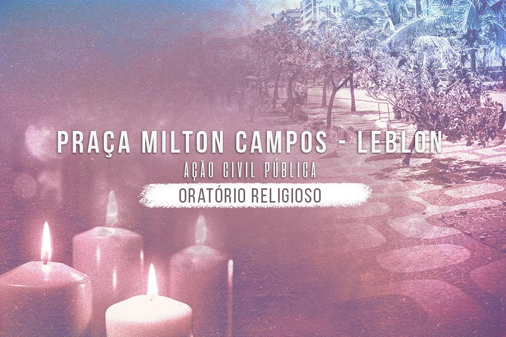 O Ministério Público do Estado do Rio de Janeiro (MPRJ), por meio da 2ª Promotoria de Justiça de Tutela Coletiva de Proteção da Ordem Urbanística, ajuizou Ação Civil Pública (ACP) com antecipação de tutela para que o Município do Rio retire da Praça Milton Campos, no Leblon, um oratório religioso construído irregularmente no local e para impedir a construção, em caráter permanente, de novos oratórios religiosos no interior das praças públicas da cidade. A ACP foi distribuída para a 2ª Vara de Fazenda Pública da Capital na quinta-feira (31/01).