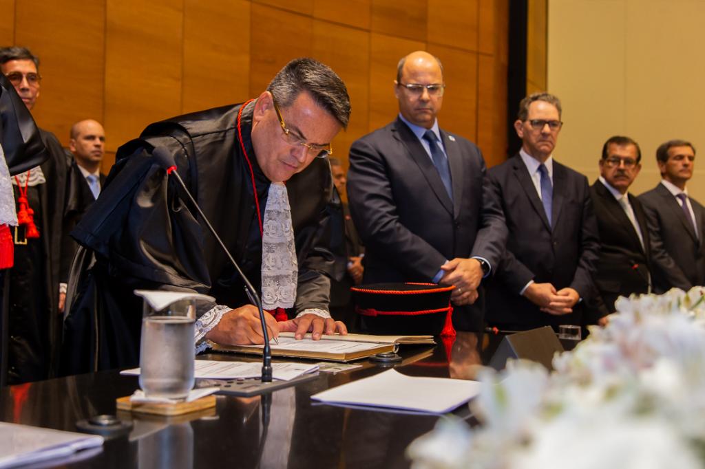O procurador-geral de Justiça, Eduardo Gussem, participou nesta segunda-feira (04/02) da mesa de abertura da posse da nova administração do Tribunal de Justiça do Estado do Rio de Janeiro (TJRJ) para o biênio 2019/21, no edifício-sede do TJRJ. O desembargador Claudio de Mello Tavares assumiu a presidência da instituição, enquanto os desembargadores Bernardo Moreira Garcez Neto (corregedoria), Reinaldo Pinto Alberto Filho (1ª vice-presidência), Paulo de Tarso Neves (2ª vice-presidência), Elizabeth Filizola Assunção (3ª vice-presidência) e André Gustavo Corrêa de Andrade (diretor-geral da Escola da Magistratura do Estado do Rio de Janeiro) foram os demais empossados para os principais cargos administrativos do tribunal.