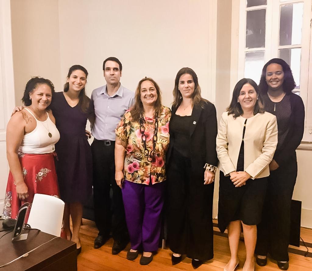 No evento de quinta (21/02), o Núcleo de Pesquisa de Gênero e Etnia (Nupegre), da Emerj, apresentou a pesquisa “O Desaparecimento forçado de meninas no Rio de Janeiro: desafios do Sistema de Justiça”. Além da assessora da ADHM/MPRJ, participaram da mesa de debates a juíza Adriana Mello, especialista em violência doméstica e presidente do Fórum Permanente; o membro do Conselho Nacional de Justiça (CNJ) e juiz do Tribunal Regional do Trabalho da 10ª Região, Luciano Frota; o defensor público e coordenador do Nupegre, Fábio Amado de Souza Barretto; e o presidente da ONG Portal Kids e do movimento Mães do Brasil, Wal Ferrão; além da titular da SEDSDH, Fabiana Bentes. Também esteve presente no encontro a promotora de Justiça Roberta Ribeiro, assistente da ADHM/MPRJ.
