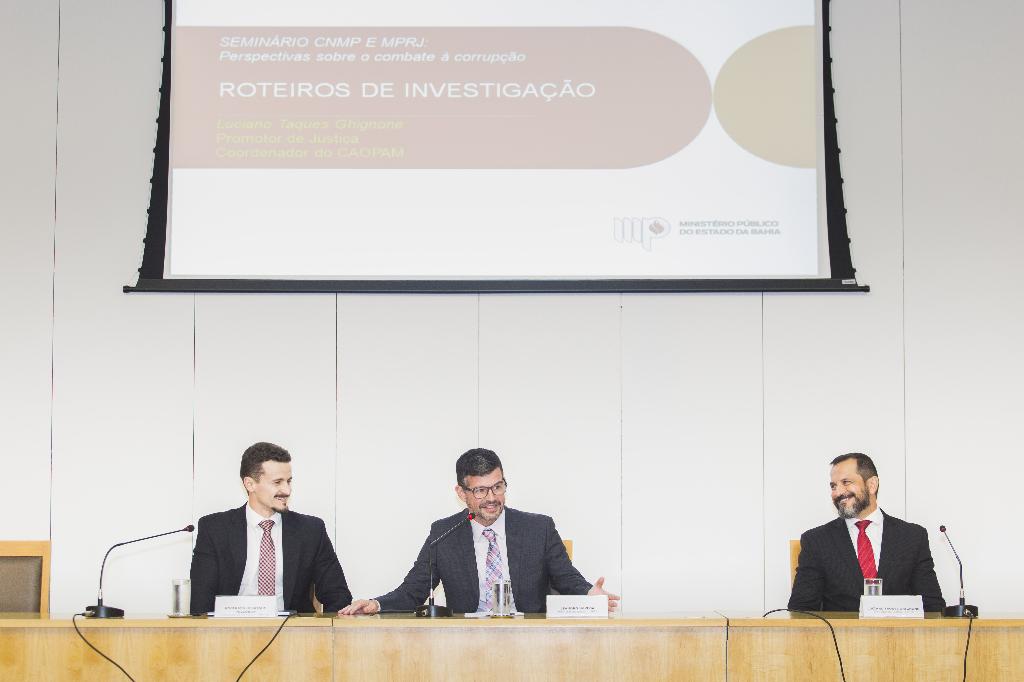 O Ministério Público do Estado do Rio de Janeiro (MPRJ) sediou, na tarde de quinta-feira (14/03), a abertura do ‘Seminário CNMP e MPRJ: perspectivas sobre o combate à corrupção’, no auditório de seu edifício-sede. Realizado em parceria com o Conselho Nacional do Ministério Público (CNMP), o evento contou com a participação de representantes de instituições envolvidas na fiscalização dos gastos públicos. Compuseram a mesa de abertura o procurador-geral de Justiça, Eduardo Gussem; os conselheiros do CNMP, Silvio Amorim e Sebastião Caixeta; o presidente da Associação Nacional dos Procuradores da República (ANPR), José Robalinho Cavalcanti; e o presidente da Associação do MPRJ (AMPERJ), Ertulei Laureano Matos.