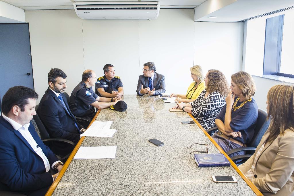 O procurador-geral de Justiça, Eduardo Gussem, recebeu nesta segunda-feira (11/03), a visita do secretário estadual de Polícia Militar (PM), coronel Rogério Figueredo, e do corregedor-geral da PM, coronel Joseli Candido, para discutir estratégias de interação entre as duas instituições. “Hoje, felizmente, nós temos mantido um contato permanente com o novo governo do Estado, trocando informações e compartilhando métodos para que possamos atender a população de maneira mais eficiente. Por isso, mantendo esta tendência, é de fundamental importância ter o comandante da PM em nossa instituição, conhecendo nossas estruturas e interagindo conosco para que possamos evitar retrabalho e desperdício de energia no atendimento à sociedade”, destacou Gussem.