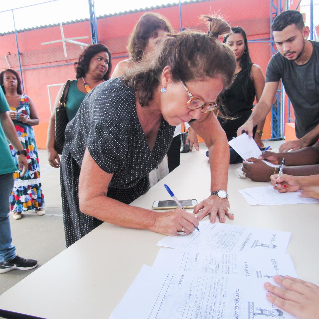 Também estiveram presentes o ouvidor da Secretaria Estadual de Educação (SEEDUC), Fernando Kaczelnik, a secretária adjunta de Educação do Município de Belford Roxo, Eneila Lucas, a secretária executiva, Fátima Duarte, e a diretora da escola, Janete Guimarães. A maioria dos 1.129 alunos matriculados no colégio participou da eleição, que transcorreu de maneira muito disputada, já que muitos estudantes quiseram participar da escolha.