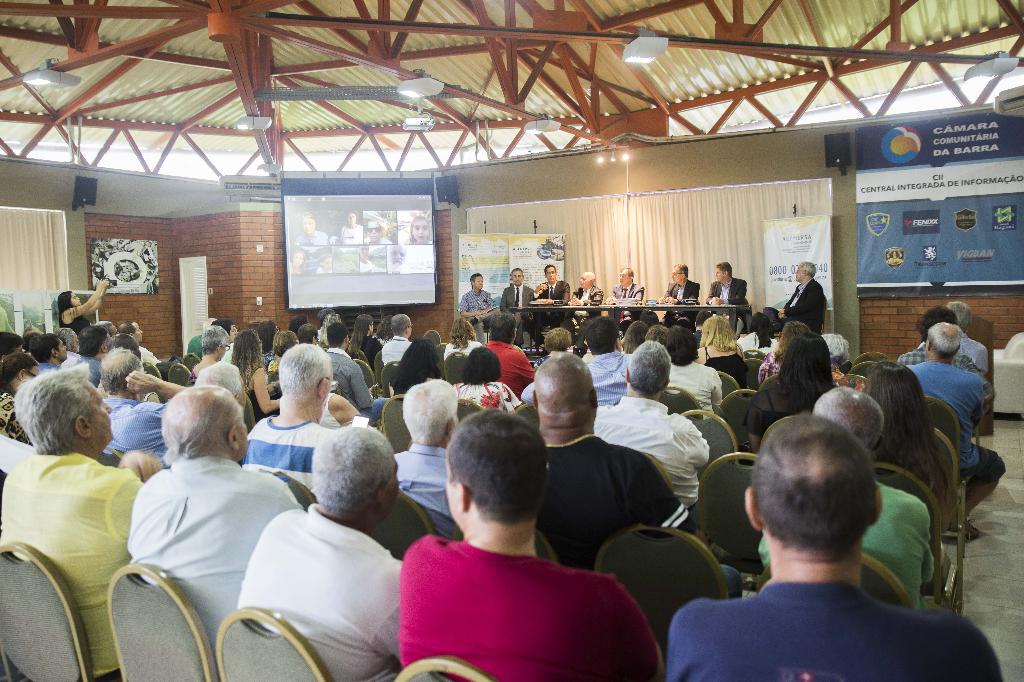 O Ministério Público do Estado do Rio de Janeiro (MPRJ), por meio do Grupo de Atuação Especializada em Meio Ambiente (GAEMA/MPRJ) e do Grupo de Apoio Técnico Especializado (GATE/MPRJ), participou, na tarde de terça-feira (07/04), de audiência pública para discutir projetos de saneamento básico que podem contribuir para a despoluição do complexo de lagoas da Barra da Tijuca, Recreio e Jacarepaguá. O evento ocorreu na Câmara Comunitária da Barra, e contou com a apresentação de uma série de propostas de obras pela CEDAE (Companhia Estadual de Águas e Esgotos do Rio de Janeiro) visando à adequação dos sistemas de coleta, tratamento e destinação do esgoto sanitário nos bairros da Zona Oeste.