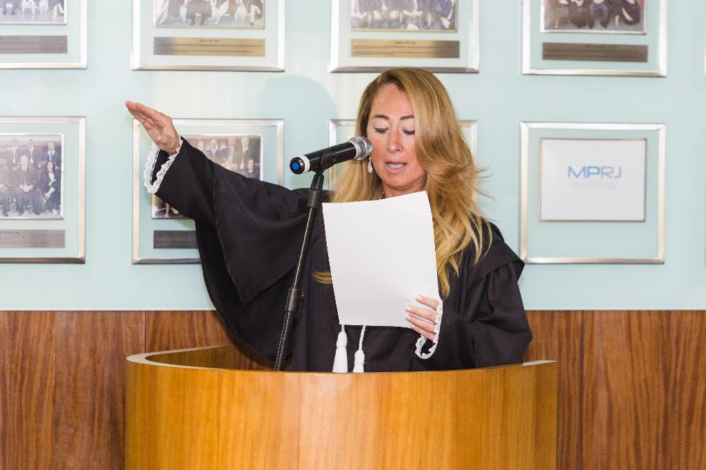Coube a Ediléa Gonçalves fazer o discurso em nome dos novos procuradores. “É com grande honra que faço esse discurso em nome dos colegas do MPRJ, instituição na qual tive a felicidade de ingressar há mais de 25 anos. Não foram poucas as investidas contra o MP no decorrer desses anos, com tentativas de promulgação de leis que pretendem derrubar as garantias e prorrogativas do livre exercício da nossa atividade. Precisamos atuar de forma integrada, com a troca de experiências entre promotores e procuradores, em nome do objetivo maior, que é a busca pela Justiça. Por nosso papel de guardiões da ordem jurídica, somos agentes formuladores de políticas públicas e de transformação social. É hora de continuar a luta iniciada pelos colegas de primeira instância. A sociedade fluminense espera e confia que nossa atuação seja pautada no cumprimento fiel da Lei e da Constituição, sempre buscando ser instrumento para a garantia de um Estado mais justo, solidário e igualitário”.