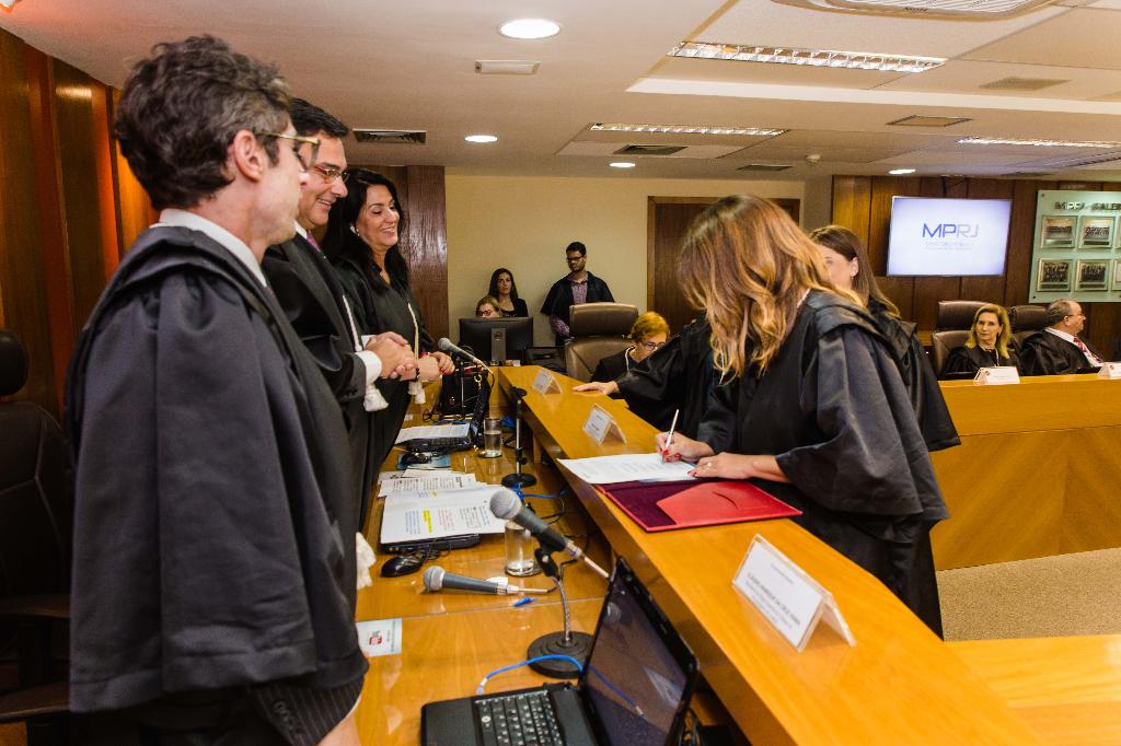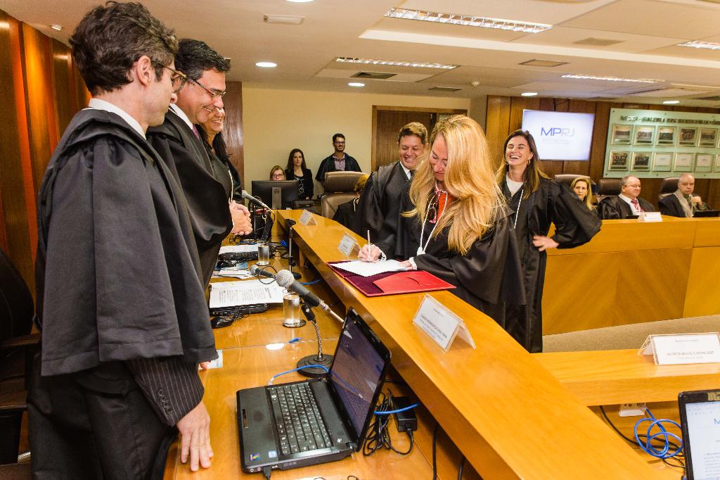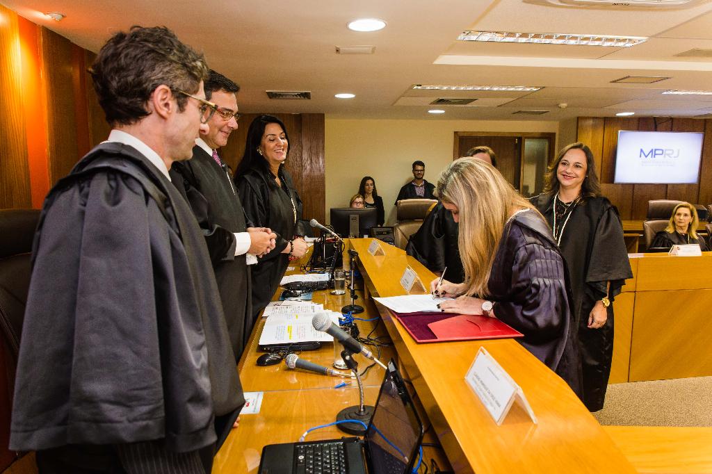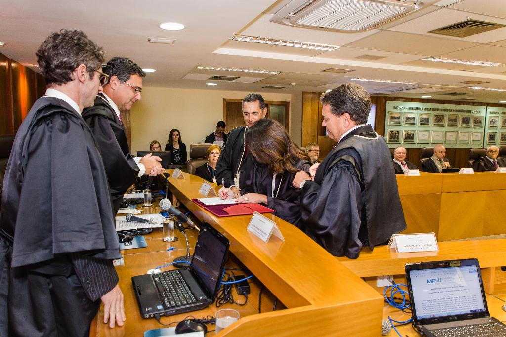 Na sequência, teve início a convocação dos novos procuradores para assinatura do respectivo termo de posse, nesta ordem, e sempre acompanhados por seus padrinhos: Ediléa Gonçalves (apadrinhada pelos procuradores Carlos Cicero Duarte Junior e Walberto Fernandes de Lima), Christiane Monnerat (com Márcio Mothé Fernandes e Mária Luiza Bezerra Cortes Barroso Miranda), Mauricio Cesar do Couto (Dennis Aceti Brasil e Eduardo Gussem), Ana Cristina Lesqueves Barra (com as madrinhas Helane Vieira Ramos e Conceição Maria Tavares de Oliveira) e Ana Paula Baptista (com Inês da Matta Andreiuolo e Patricia Leite Carvão).