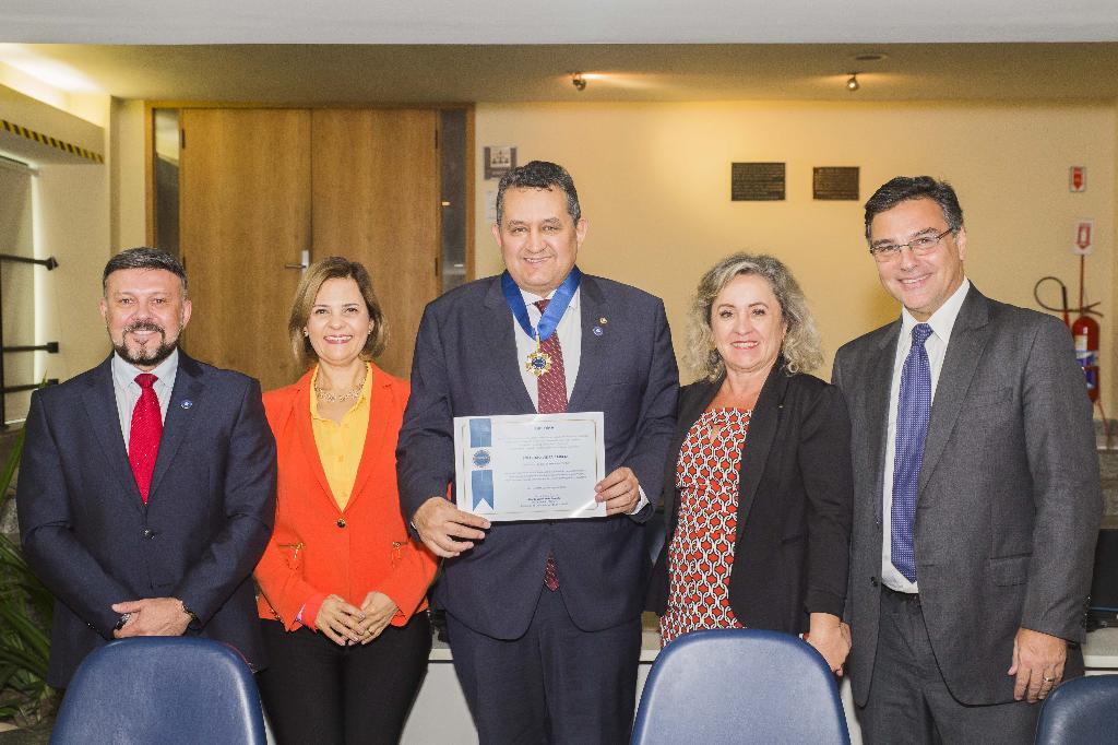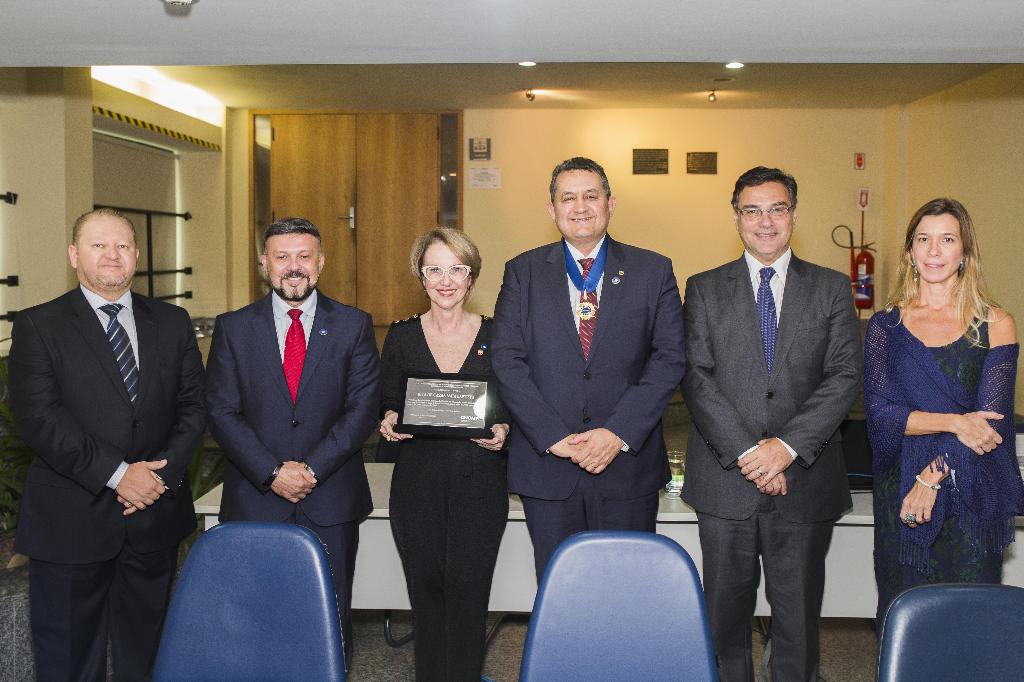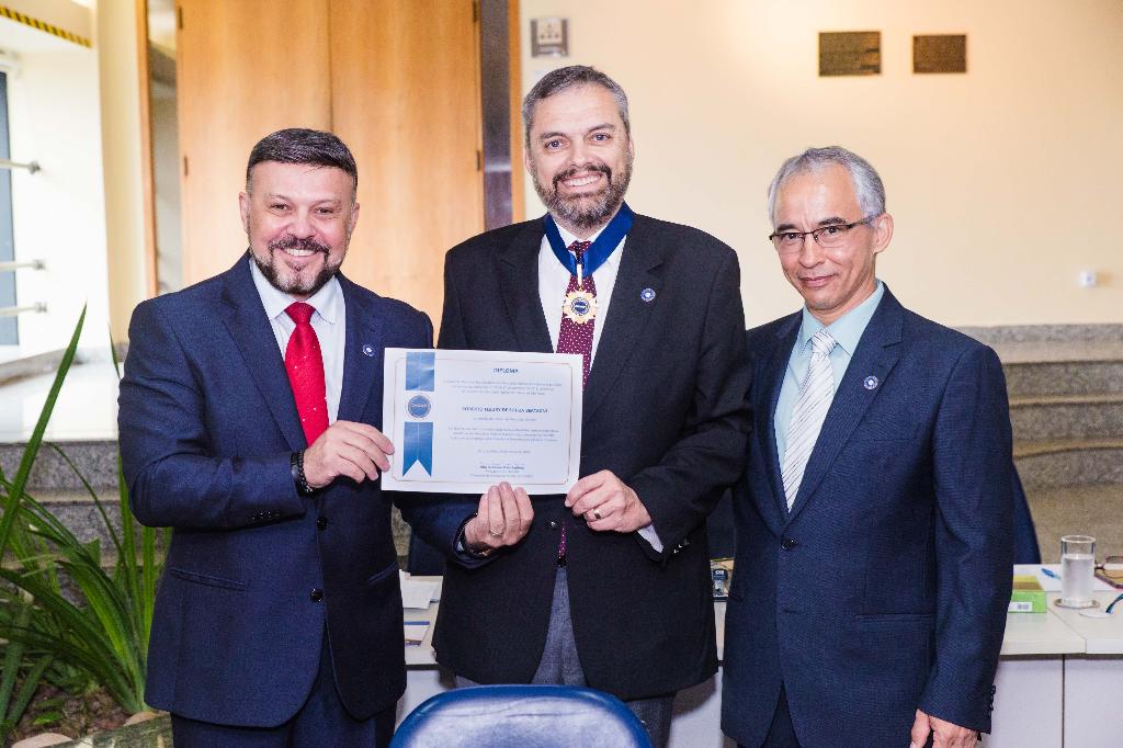 A programação teve continuidade com a entrega da Comenda Ordem ao Mérito do CNOMP ao procurador regional do Trabalho, Sebastião Vieira Caixeta, presidente da Comissão de Planejamento Estratégico do CNMP. A medalha lhe foi entregue por Roselia de Sousa, ouvidora do MP de Roraima, e a saudação foi feita por Rita de Cássia Maia Batista, ouvidora do MP do Maranhão e presidente anterior do CNOMP (exercício 2018), que também recebeu placa de homenagem em função de sua gestão à frente do conselho.