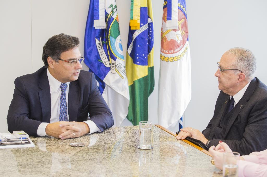 O Ministério Público do Estado do Rio de Janeiro (MPRJ) recebeu, nesta quarta-feira (17/07), a visita do reitor da Pontifícia Universidade Católica do Rio de Janeiro (PUC-Rio), padre Josafá Carlos de Siqueira, que reuniu-se com o procurador-geral de Justiça, Eduardo Gussem, para discutir novas parcerias nas áreas tecnológica e de processamento de dados. “A PUC é uma universidade com a qual já temos parcerias e que é referência em diversas áreas de atuação, como georreferenciamento, informática e estatística. As instituições estão se modernizando. A médio prazo, o sistema de Justiça terá uma atuação diferenciada no que diz respeito ao uso de novas tecnologias e, por isso, nós temos muito ainda a aprender com a área acadêmica para nos aperfeiçoarmos”, afirmou o PGJ.