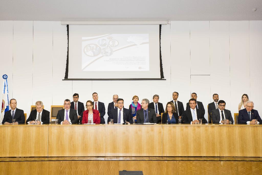 Além de Gussem e Rochadel, compuseram a mesa de abertura do evento o subprocurador-geral de Justiça de Relações Institucionais e Defesa de Prerrogativas do MPRJ, Marfan Vieira; o subprocurador-geral de Justiça de Administração do MPRJ, Eduardo Lima Neto; a subcorregedora-geral do MPRJ, Rita de Cássia Araújo; a ouvidora-geral do MPRJ, Denise Fabião Guasque; o vice-presidente da Associação do MPRJ (Amperj), Virgilio Stravridis; o procurador-chefe do Ministério Público do Trabalho do Rio, Fabio Villela; o promotor de Justiça do Ministério Público Militar, Mário André da Silva Porto; o procurador-chefe substituto do Ministério Público Federal do Rio, Flávio Paixão de Moura; o coordenador geral da Corregedoria Nacional, José Augusto de Souza Peres; o chefe de gabinete da Corregedoria Nacional, Rinaldo Reis; o assessor especial da Corregedoria Nacional, Benedito Torres; o coordenador disciplinar da Corregedoria Nacional, Rafael Kurkowski; o coordenador de Inovação, Evolução Humana e Estágio Probatório da Corregedoria Nacional, Jairo Moreira; o coordenador substituto de Inovação, Evolução Humana e Estágio Probatório da Corregedoria Nacional, Samuel Alvarenga; o coordenador substituto de Correições e Inspeções da Corregedoria Nacional, Fabiano Mendes Rocha; e o membro auxiliar da Corregedoria Nacional, promotor de Justiça Bernardo Vieira.
