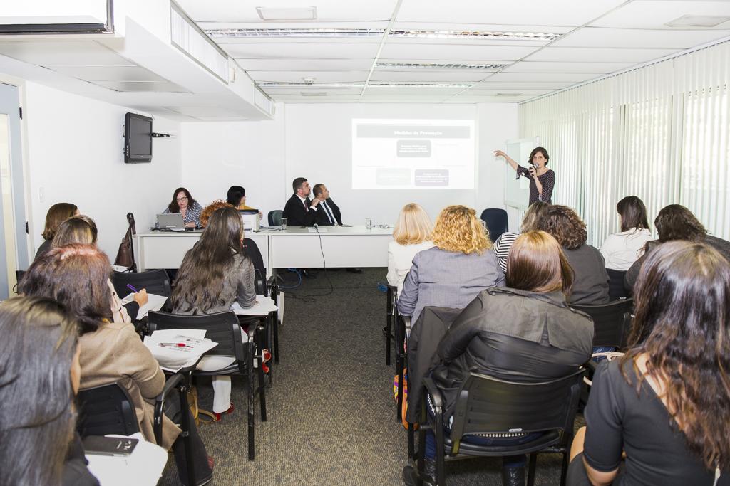 A outra palestrante foi Katherine Jatahy, juíza de Direito e integrante da Coordenadoria Estadual da Mulher em Situação de Violência Doméstica e Familiar do Tribunal de Justiça do Estado do Rio de Janeiro (COEM/TJRJ), que apresentou o formulário de risco desenvolvido pelo Conselho Nacional de Justiça (CNJ) e expôs projetos desenvolvidos pelo Tribunal de Justiça a fim de garantir a segurança e a proteção máxima das mulheres vítimas de violência. O formulário reúne perguntas destinadas a avaliar as condições físicas e emocionais da mulher e as condições objetivas, para prevenção do agravamento da violência em curto prazo. A coleta sistematizada e padronizada de informações, por meio do FRIDA, busca fundamentar e avaliar as medidas protetivas de urgência previstas na Lei Maria da Penha, além de outras medidas necessárias à proteção da mulher.
