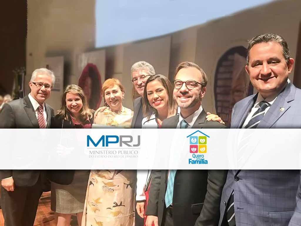 O prêmio ao “Quero uma Família” foi entregue ao coordenador do CAO Infância e Juventude/MPRJ, promotor de Justiça Rodrigo Medina, e aos promotores da Infância e Juventude Marcos Fagundes e Daniela Vasconcellos, criadores do projeto, junto com a também promotora Flavia Tamanini. A entrega foi feita pela subprocuradora-geral de Planejamento Institucional, procuradora de Justiça Maria Cristina Palhares dos Anjos Tellechea, que representou o procurador-geral de Justiça do MPRJ, Eduardo Gussem, na ocasião.