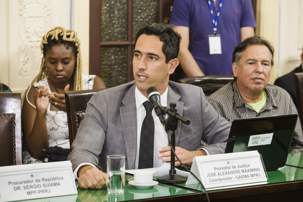 O promotor de Justiça José Alexandre Maximino, coordenador do GAEMA/MPRJ, iniciou sua fala expondo a atuação do MPRJ. Ele explicou que o GAEMA/MPRJ centralizou os inquéritos que tratam da questão, buscando mais sinergia e eficiência. Também traçou um panorama da questão e elencou alguns dos avanços obtidos em conjunto com o Ministério Público Federal (MPF), citando o diagnóstico da rede coletora, monitoramento dos cursos hídricos, fiscalização da operação das Estações de Tratamento de Esgoto (ETE´s) e Elevatórias (EE´s), entre outros.
