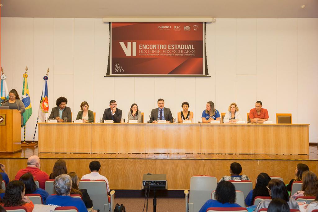 O Ministério Público do Estado do Rio de Janeiro (MPRJ) sediou nesta terça-feira (27/08), em seu auditório, o VI Encontro Estadual dos Conselhos Escolares, que teve como tema “Gestão Democrática e Participação: Desafios e Reflexões”. Organizado pelo Grupo Articulador de Fortalecimento dos Conselhos Escolares (GAFCE-RJ), o evento contou com o apoio do Centro de Apoio Operacional das Promotorias de Justiça de Tutela Coletiva de Proteção à Educação (CAO Educação/MPRJ) e do Instituto de Educação e Pesquisa (IEP/MPRJ), e teve por objetivo discutir o papel dos conselhos escolares no aperfeiçoamento do ensino público e a importância da participação da sociedade na gestão da Educação.