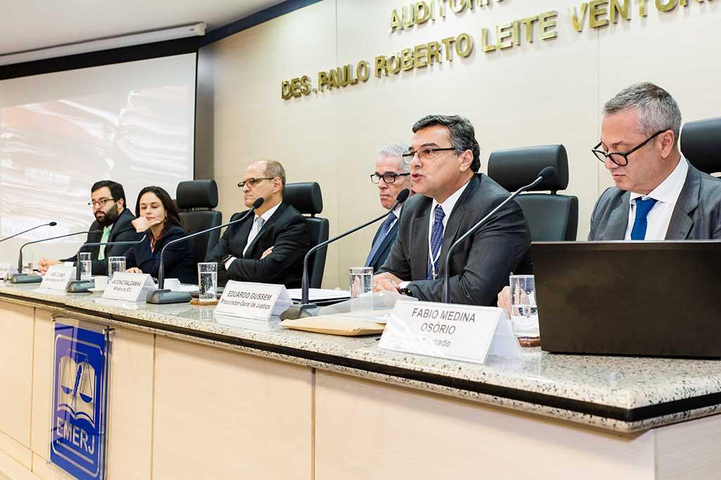 O Ministério Público do Estado do Rio de Janeiro (MPRJ) participou, na segunda-feira (02/09), do seminário ‘O Papel do Judiciário na Retomada do Desenvolvimento do Rio de Janeiro’, na sede da Escola da Magistratura do Estado do Rio de Janeiro (Emerj), no Centro do Rio. Organizado pelo site Consultor Jurídico (Conjur) e pelo Anuário da Justiça, o evento teve a participação de diversas autoridades.