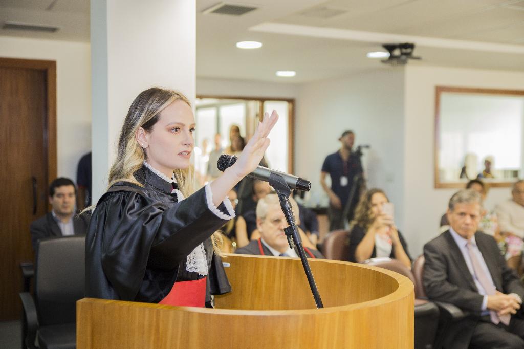 Em seu discurso, o PGJ falou à nova promotora de Justiça sobre a importância de servir à sociedade. “É uma satisfação empossar a doutora Mariáh, que podemos ver aqui na cerimônia de posse, com a presença de sua família. Ela agora integra a nossa instituição e certamente exercerá sua função com serenidade e equilíbrio. Agir com cautela, determinação e responsabilidade é fundamental para a estruturação da sociedade em que vivemos e para atingirmos os objetivos que a Constituição nos confere como membros do MPRJ”, afirmou Gussem.
