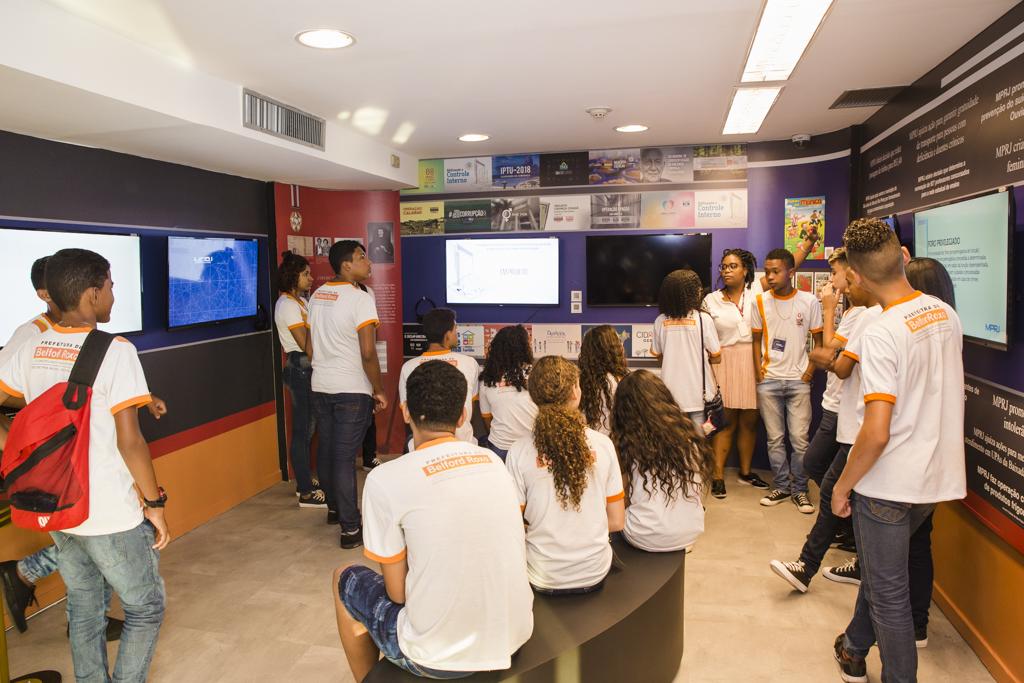 O Ministério Público do Estado do Rio de Janeiro (MPRJ) recebeu, na segunda-feira (16/09), a visita de estudantes da rede municipal de ensino de Belford Roxo, que participam do projeto Ouvidores Mirins, da Ouvidoria Geral de Belford Roxo. Além dos 25 estudantes, participaram da visita outras 30 pessoas, entre responsáveis legais das crianças, professores, diretores das escolas vinculadas ao projeto e servidores da prefeitura do município da Baixada fluminense. O principal objetivo do Ouvidores Mirins é viabilizar o recebimento de demandas das escolas, por meio de sugestões, críticas e pedidos de crianças e adolescentes entre oito e 16 anos, seguido do encaminhamento das mesmas à Ouvidoria-Geral municipal.