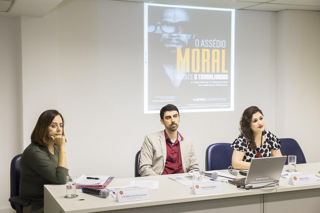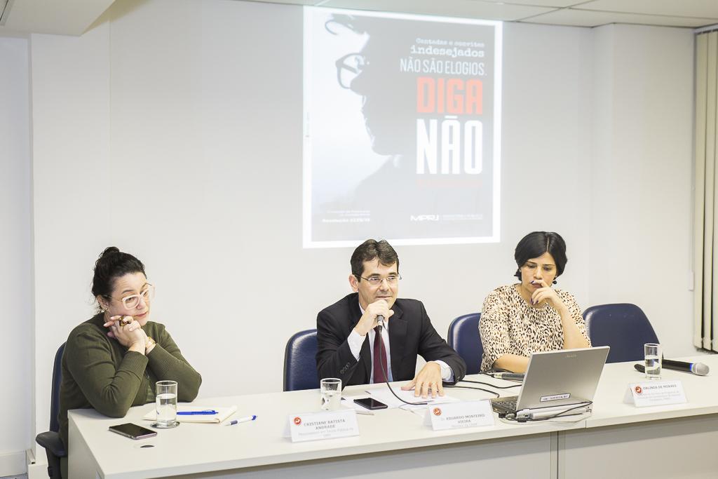 Também compuseram a mesa de abertura o diretor do Instituto de Educação e Pesquisa (IEP/MPRJ), promotor Leandro Navega, e o presidente da Associação dos Servidores do MPRJ (Assemperj), Flávio Sueth, que afirmou o papel do MPRJ no combate ao assédio. “Quando se fala de Ministério Público, a palavra mais lembrada é ‘direito’. E aqui vamos tratar da proteção aos direitos à dignidade moral, física e sexual”. O diretor do IEP/MPRJ complementou: “a prevenção é indispensável, por isso também apostamos nessa cartilha”, pontuou Navega.