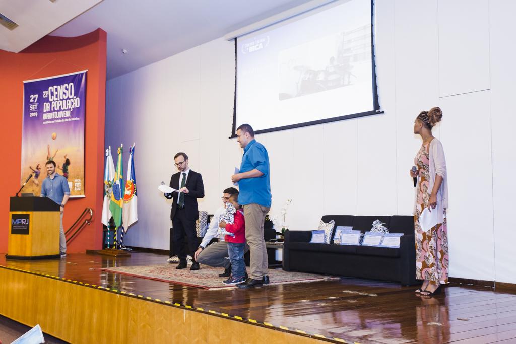 Na parte da tarde, a programação do evento foi retomada com a premiação do IX Concurso Cultural do MCA, apresentada por Rodrigo Medina e pela servidora do Cerimonial/MPRJ Thais Antunes Matoso. Com o objetivo de valorizar e estimular o talento desse público, foram premiadas 19 crianças e adolescentes de diversos serviços de acolhimento do Estado do Rio, e a premiação contemplou manifestações artísticas de dança, pintura, desenho, fotografia e música.