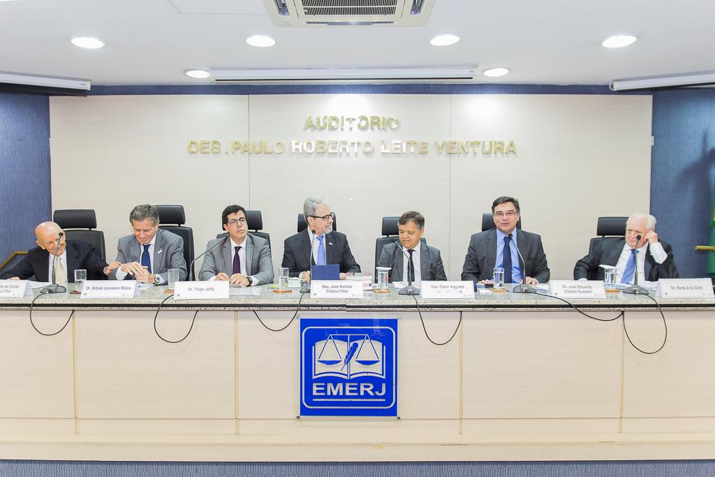 O evento foi promovido pelo Fórum Permanente de Execução Penal da Emerj, representado por Cezar Augusto Rodrigues Costa, pelo Fórum Permanente de Direito Penal e Processual Penal da Escola, representado pelo desembargador e ex-procurador-geral de Justiça, José Muiños Piñeiro Filho, e pelo Fórum Permanente de Política e Justiça Criminal da Emerj, representado por um dos seus membros, o promotor de Justiça Thiago Joffily. De acordo com José Muiños Piñeiro Filho, a homenagem reuniu os lados institucional e associativo do MPRJ. “Temos aqui o PGJ e o presidente da Amperj, mostrando o quanto é importante o procurador Demoro, um marco em sua área de atuação, para o MPRJ. Nós, profissionais do Direito, falamos hoje em promotor natural e o primeiro processualista que desenvolveu essa tese, nos anos 70, foi Demoro. Os homenageados são duas figuras exponenciais do Direito brasileiro”, citou o desembargador.