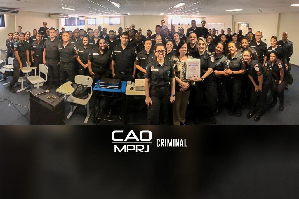 O Ministério Público do Estado do Rio de Janeiro (MPRJ), por meio do Centro de Apoio Operacional das Promotorias de Justiça Criminais (CAO Criminal/MPRJ), participou, na terça-feira (05/11), da capacitação de 80 policiais militares para o Programa “Patrulha Maria da Penha – Guardiões da Vida”. O encontro foi realizado na sede do Centro de Formação e Aperfeiçoamento de Praças (CFAP), em Sulacap. O programa é uma parceria da Secretaria de Estado de Polícia Militar e do Tribunal de Justiça do Rio. Pelo MPRJ, a promotora de Justiça Lúcia Iloizio, integrante do CAO Criminal/MPRJ, esteve presente na realização do treinamento.