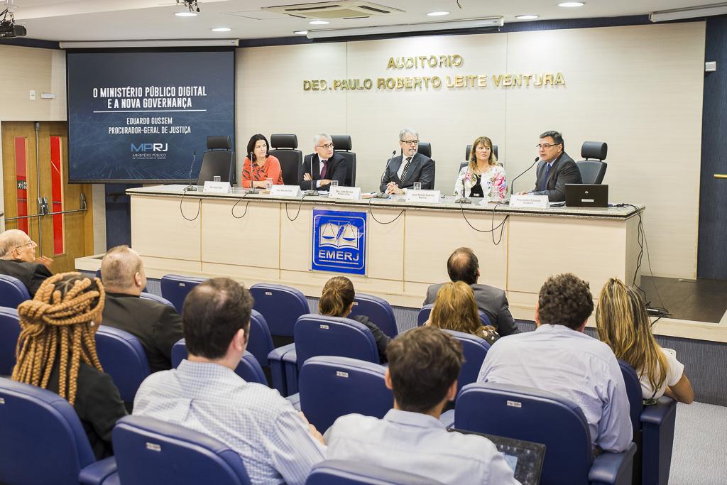 Em sua fala, Gussem traçou um panorama do Rio, lembrando que é um Estado que possui abundância de recursos naturais, indústria, turismo e outras riquezas, mas que chegou a uma situação caótica, com péssimo ambiente de negócios, solidez fiscal, transparência e segurança. Com esse cenário, enfatizou a necessidade de uma mudança de cultura. Ele também destacou a relevância do Poder Judiciário para tanto. “As instituições têm que repensar o seu modo de atuar. Precisamos ser mais céleres, mais preventivos, resolutivo e menos encarcerador, menos reativo. Eu entendo que isso deve acontecer sobretudo através da linha de governos abertos, que o Ministério Público do Rio já vem adotando”, comentou o PGJ, que pontuou: “Acredito muito que a tecnologia e as inovações sejam os grandes atalhos para que a gente consiga chegar a esse nível de resolutividade e eficiência maiores”.