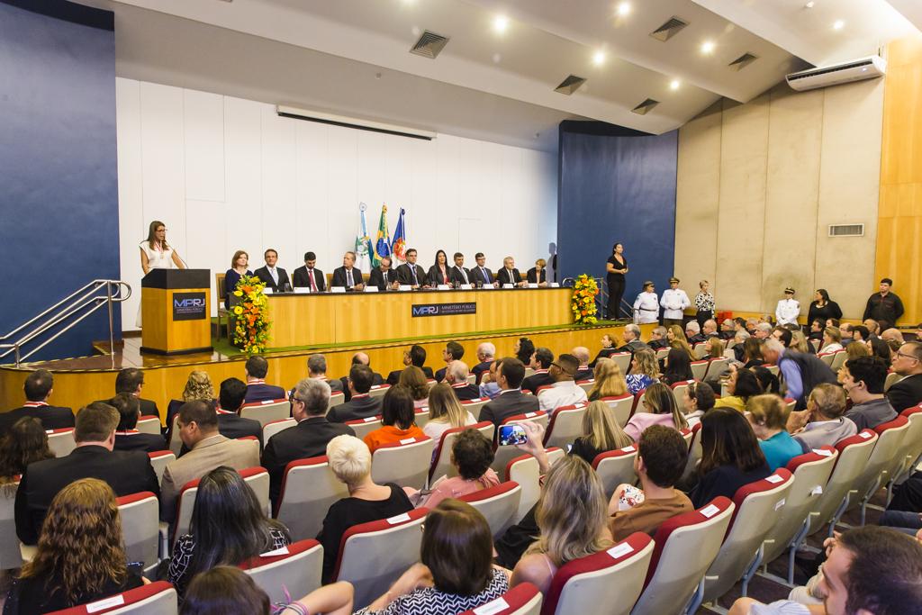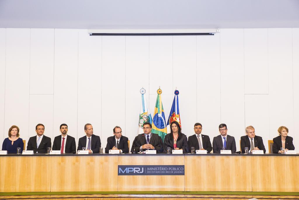 Compuseram a mesa da solenidade a corregedora-geral do MPRJ, procuradora de Justiça Luciana Sapha; o ex-procurador-geral de Justila, Antonio Biscaia; o subprocurador-geral de Justiça de Administração e presidente da Camperj, Eduardo Lima Neto; o chefe de gabinete do MPRJ, Virgílio Stavridis; a presidente da Femperj, a procuradora de Justiça Georgea Marcovecchio; a diretora do Ceprojus Mary Virginia Northrup; o diretor do agora Instituto de Educação Roberto Bernardes Barroso, promotor de Justiça Leandro Navega; o procurador-chefe do MPT-RJ, João Batista Berthier; o controlador-geral do Estado, Bernardo Barbosa; e o vice-presidente da Assemperj, Vinicius Lobo.