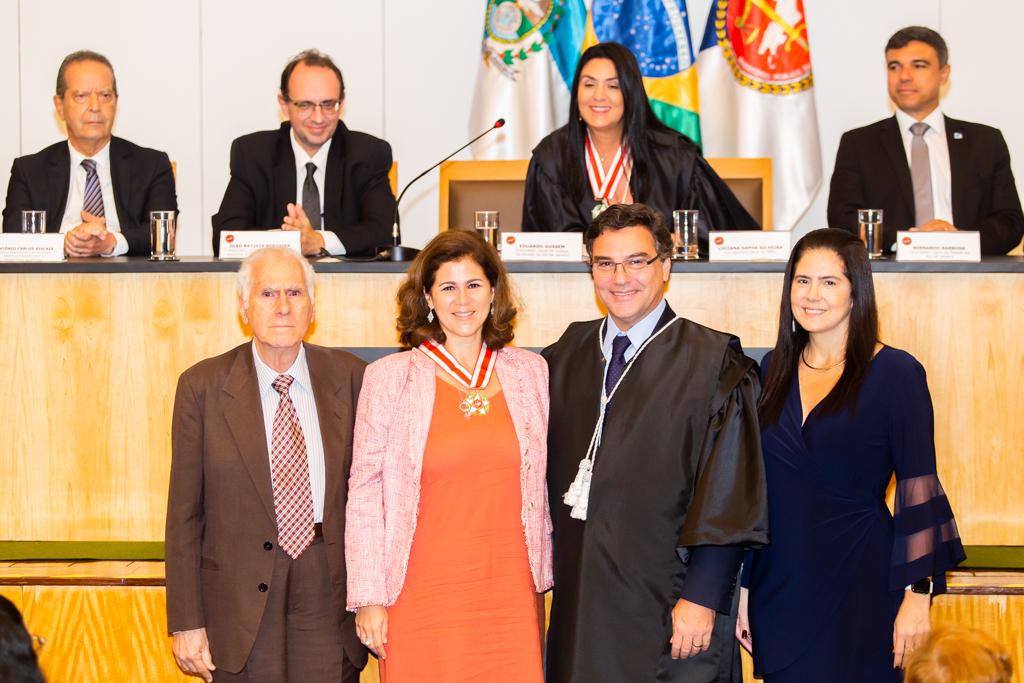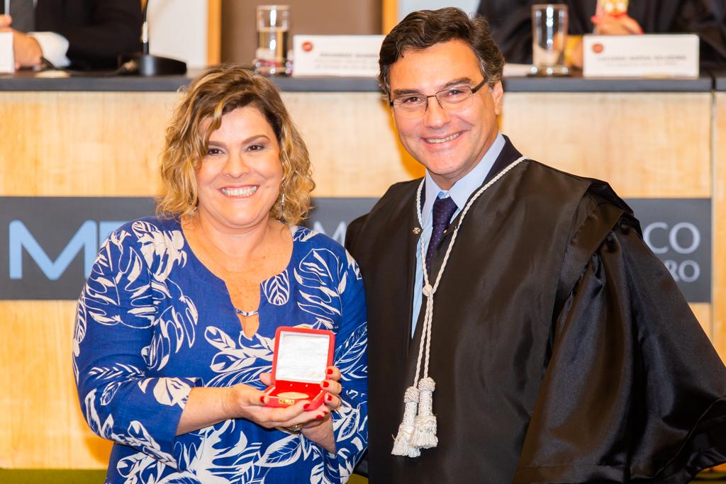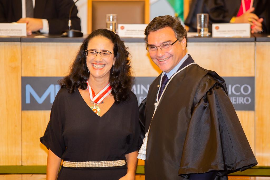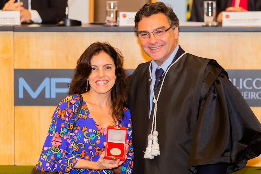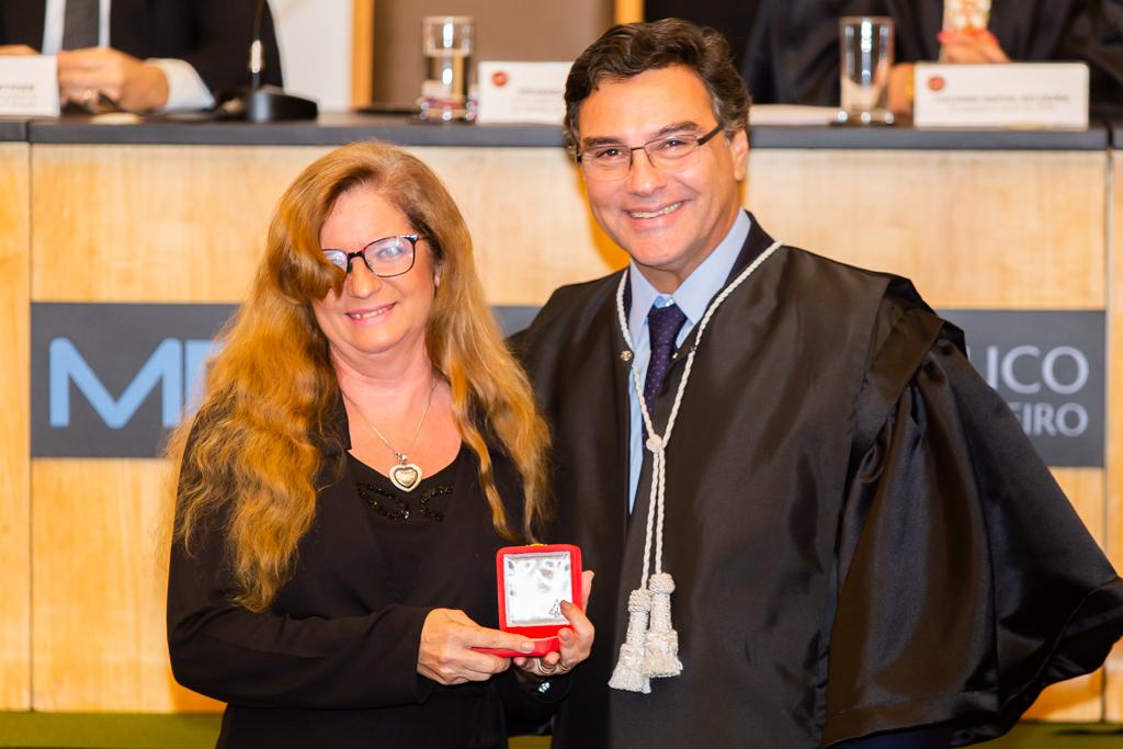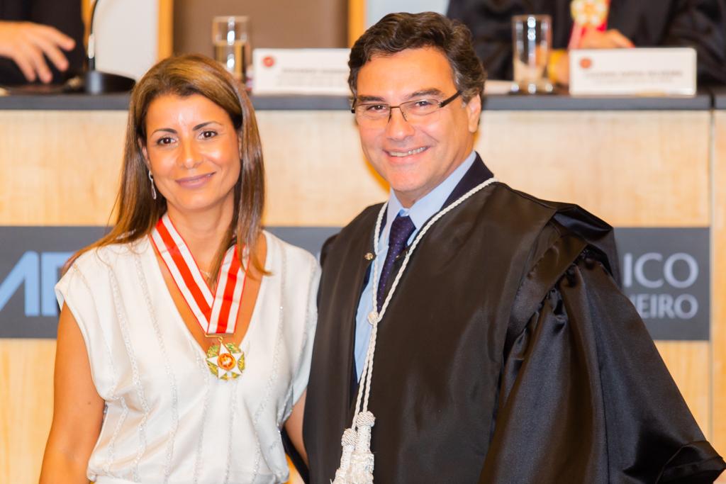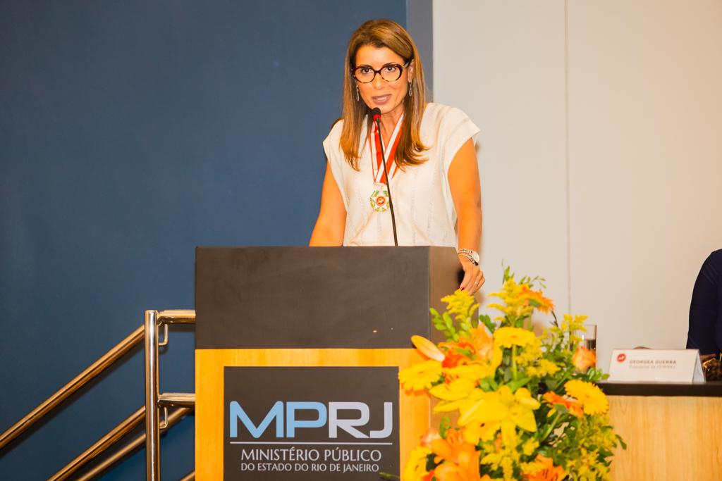 Agraciada com o Colar do Mérito, a coordenadora do Grupo de Atuação Especial no Combate ao Crime Organizado (GAECO/MPRJ), promotora de Justiça Simone Sibilio, discursou em nome dos homenageados. Em sua fala, reforçou a importância de todos terem uma conduta voltada à transformação social e multiplicadora de boas práticas, frisando a necessidade de agir e não se calar diante de injustiças e más condutas.