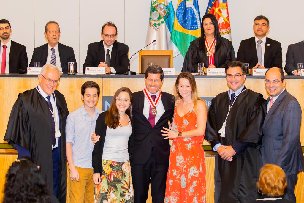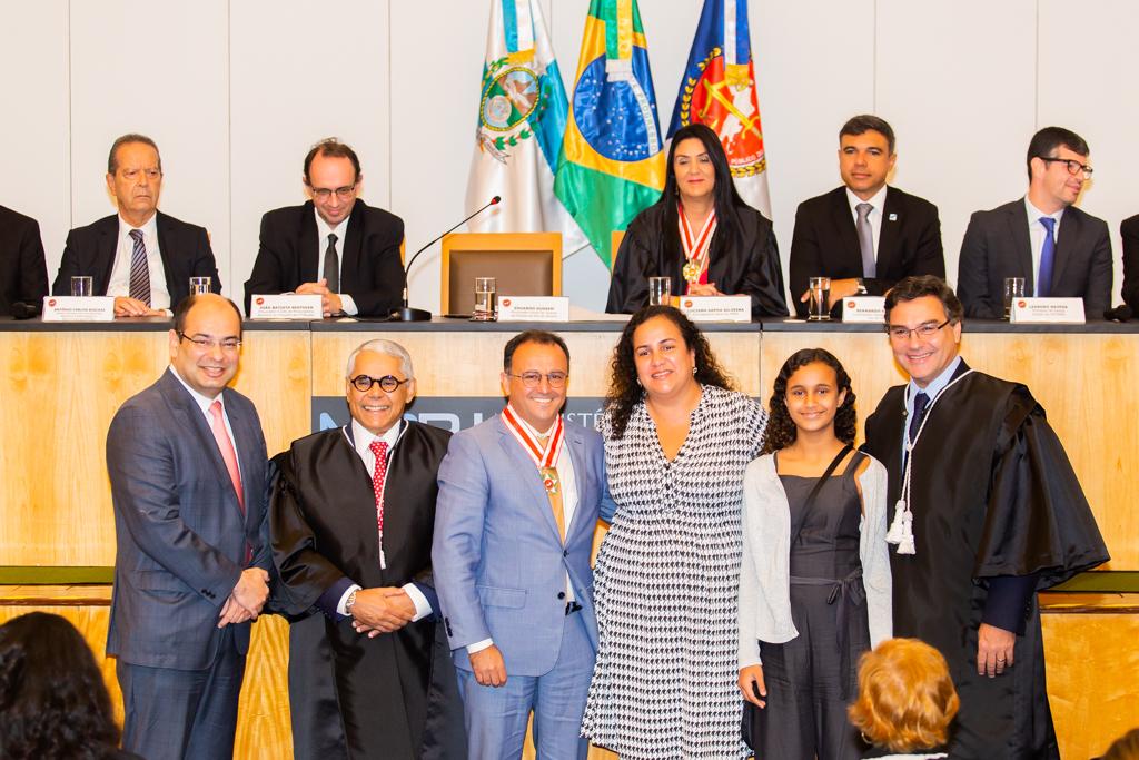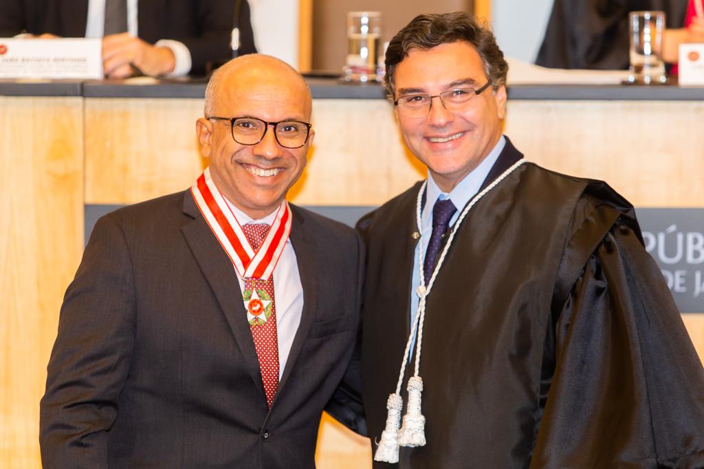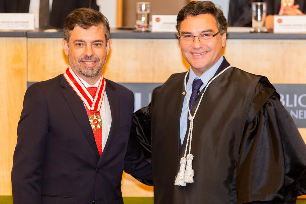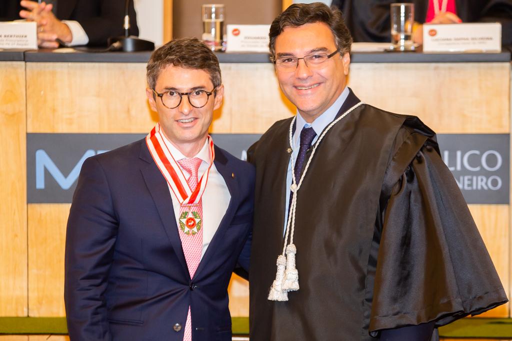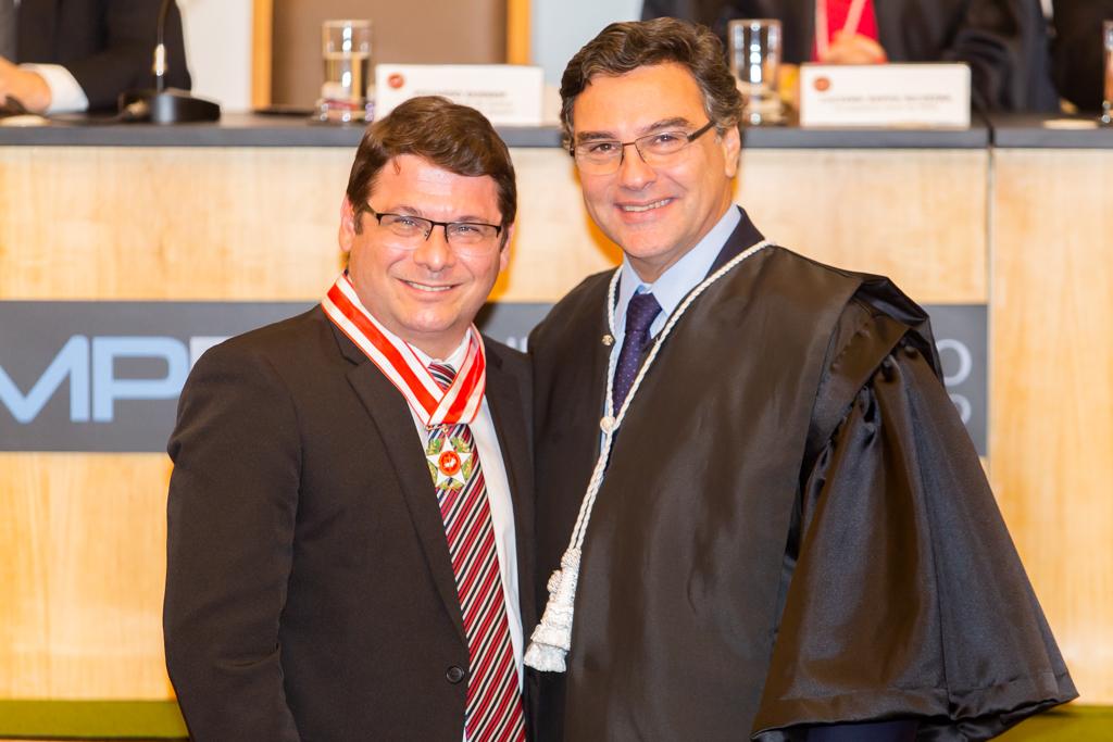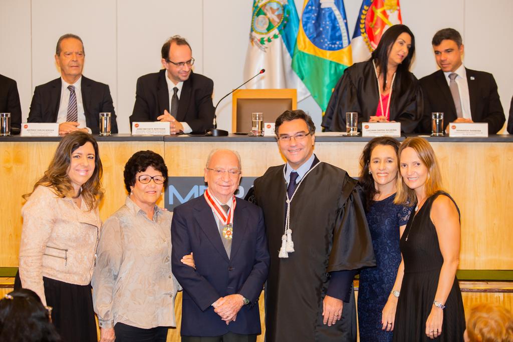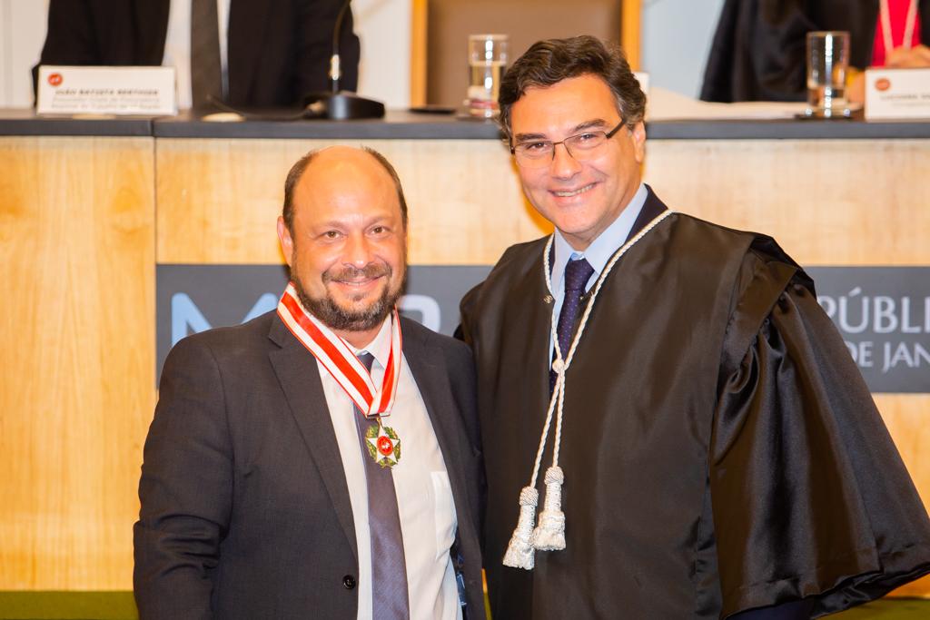 O Ministério Público do Estado do Rio de Janeiro (MPRJ) realizou, nesta sexta-feira (13/12), no auditório do edifício-sede, sessão solene de entrega do Colar do Mérito do MPRJ e da Medalha Annibal Frederico de Souza. Maior honraria concedida pela instituição, o Colar foi entregue a 20 personalidades. Já a medalha foi entregue a seis servidores por terem prestado relevantes serviços para a instituição. A cerimônia ocorreu em sessão do Órgão Especial do Colégio de Procuradores de Justiça em comemoração ao “Dia Nacional do Ministério Público”, celebrado anualmente no dia 14 de dezembro.